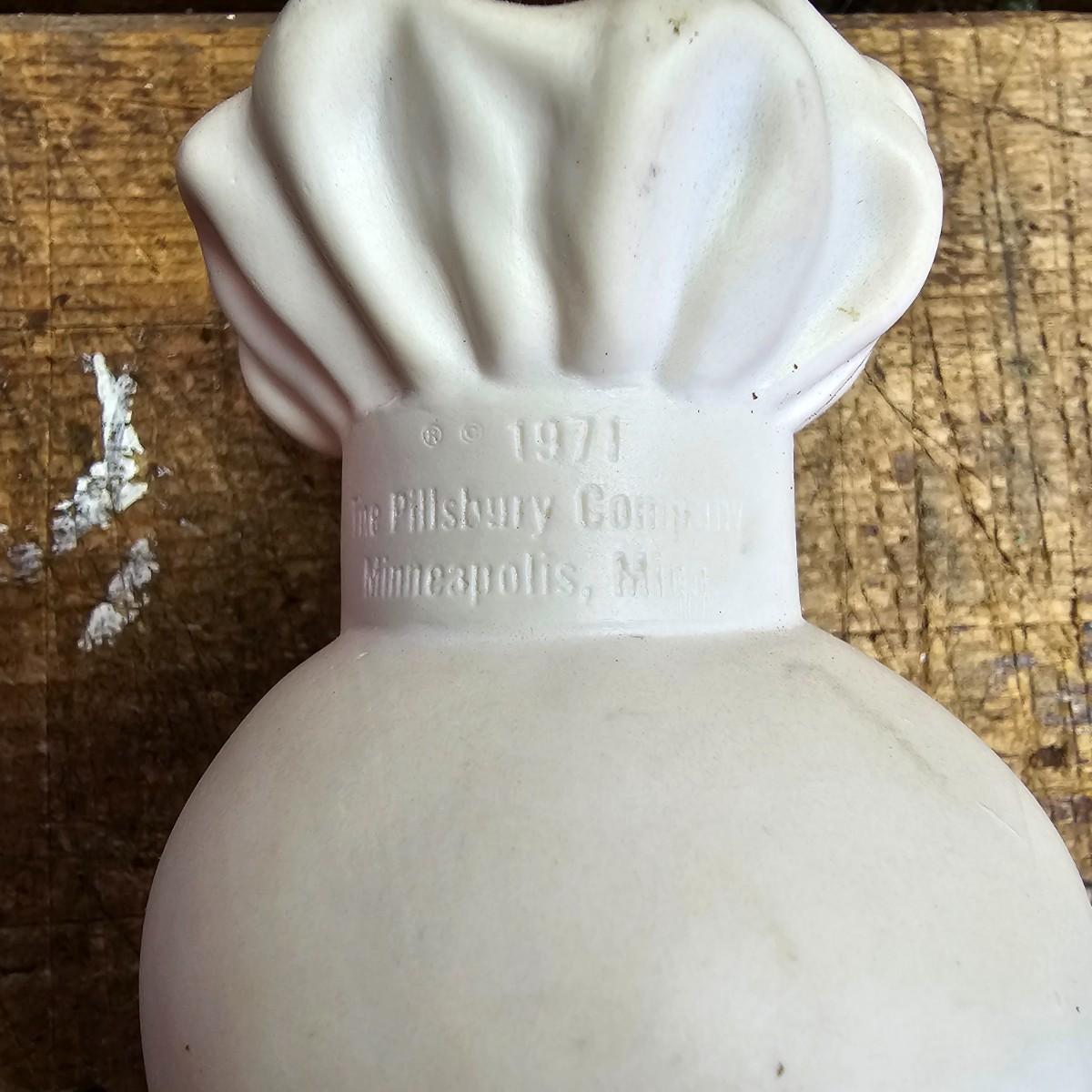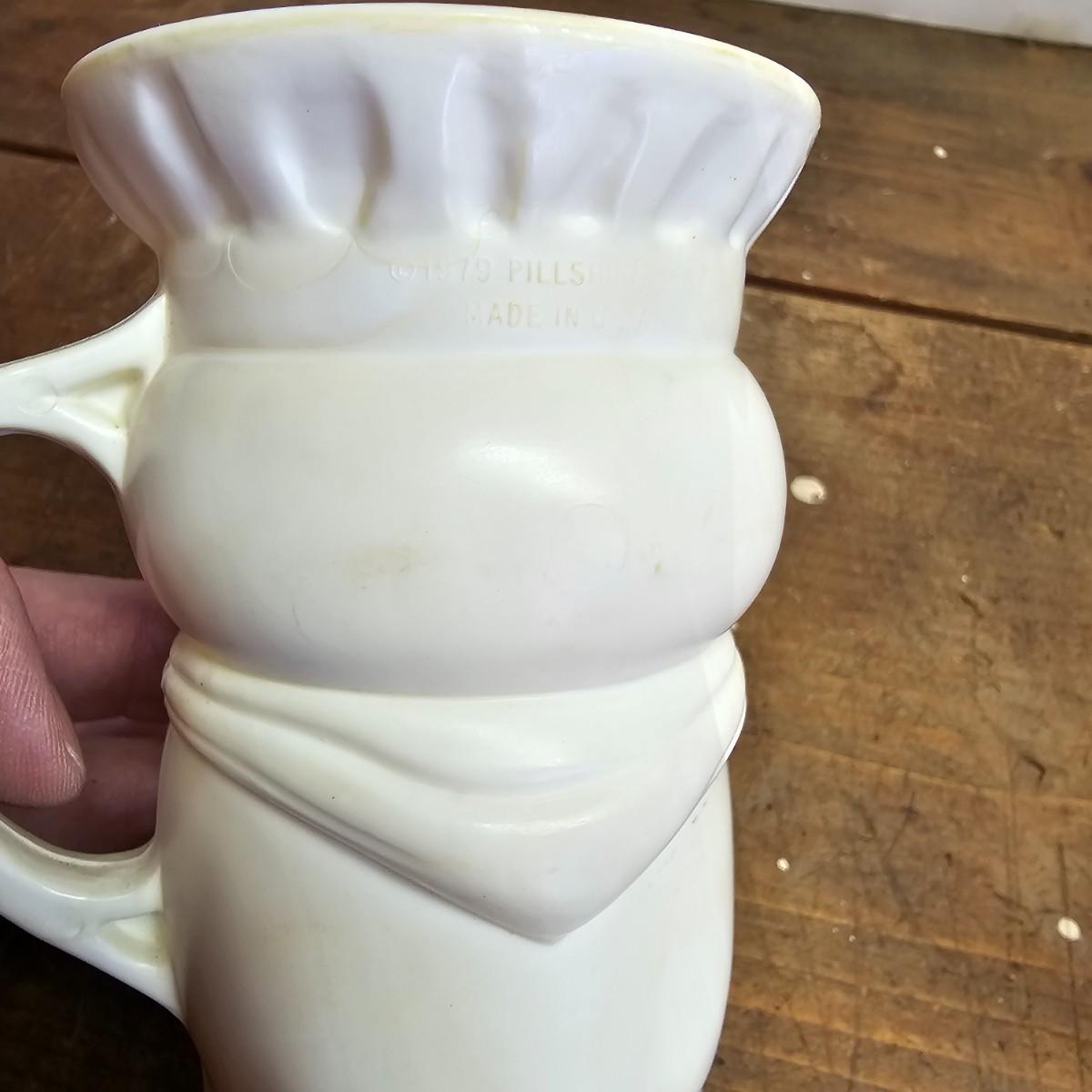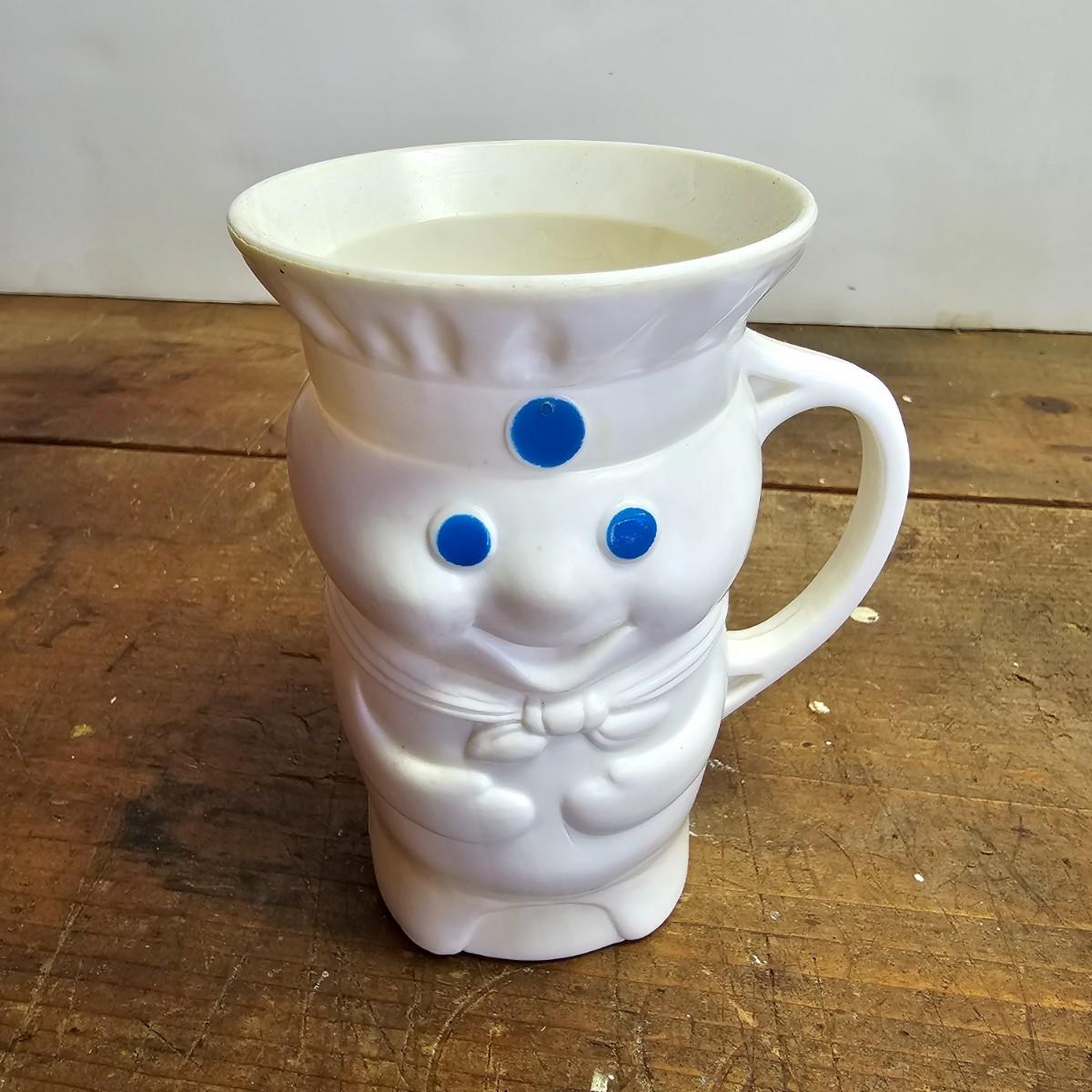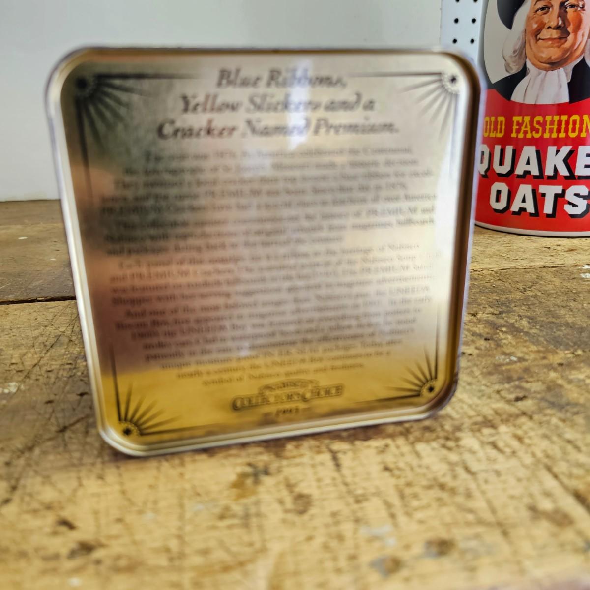 Favorites from the past. One Nabisco saltine tin, 4.5"sq x 9.5"H. Two Pillsbury dough boy items, a small handled plastic cup, 3" x 4.5", and a squeezable rubber figure, 4" x 7"H. Also a Quaker Oats ceramic cooke jar with lid, 5.5"D x 9.5"H. See photos for details. Shipping available