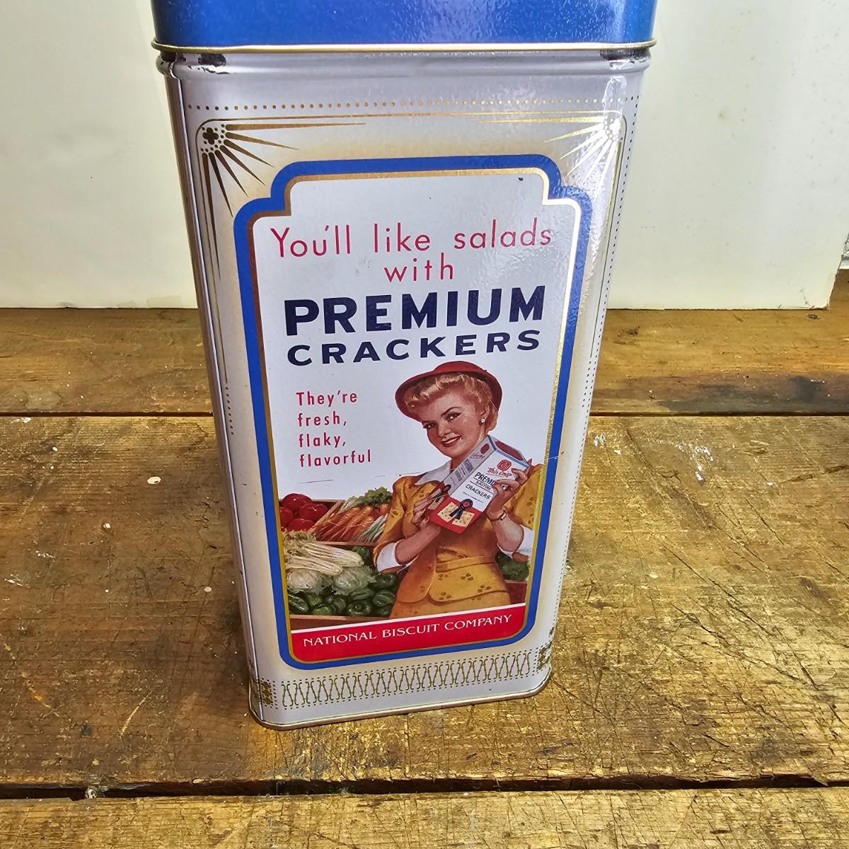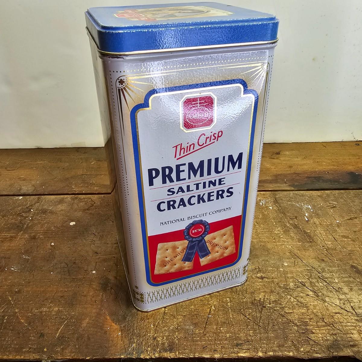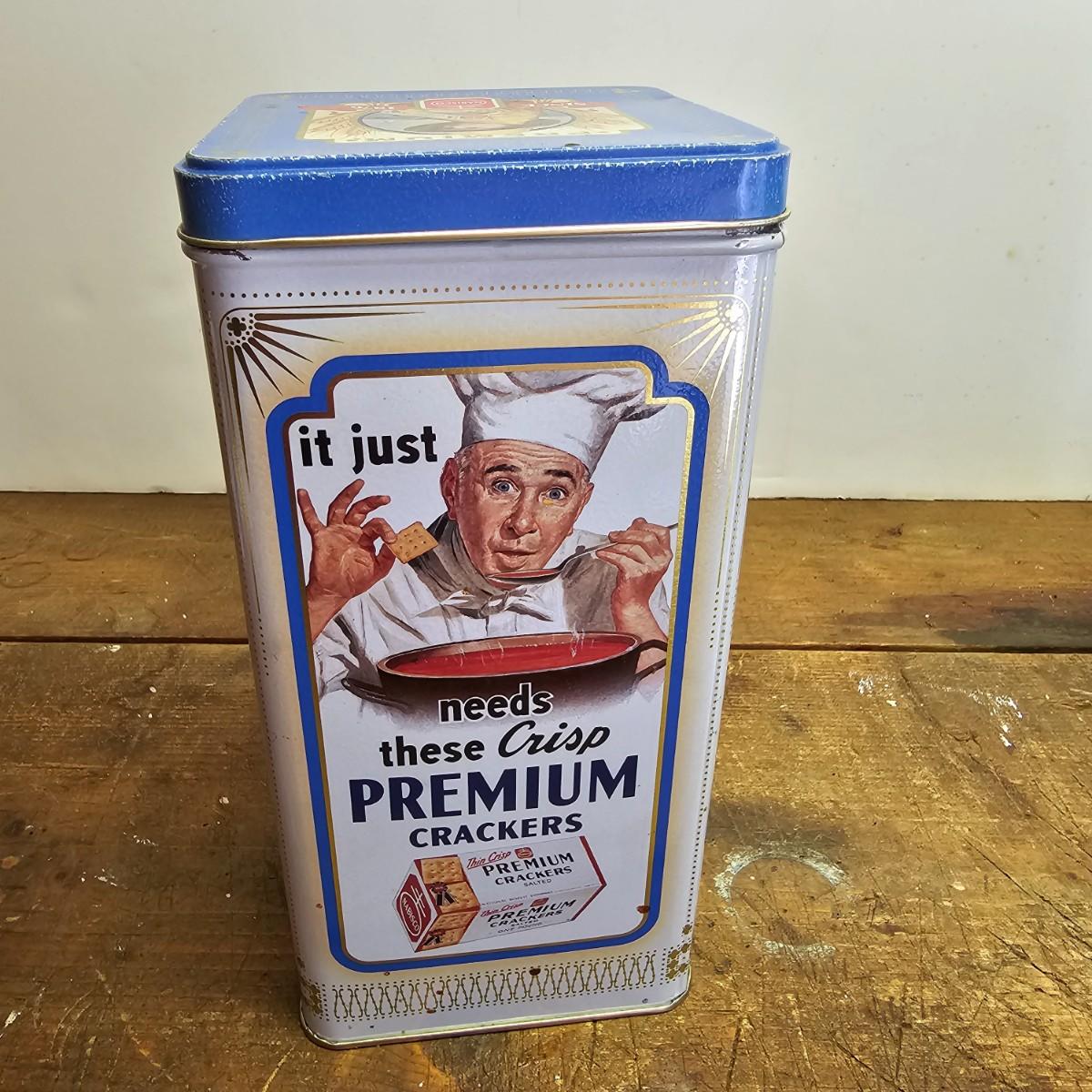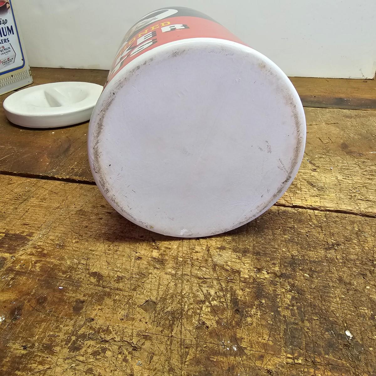 Favorites from the past. One Nabisco saltine tin, 4.5"sq x 9.5"H. Two Pillsbury dough boy items, a small handled plastic cup, 3" x 4.5", and a squeezable rubber figure, 4" x 7"H. Also a Quaker Oats ceramic cooke jar with lid, 5.5"D x 9.5"H. See photos for details. Shipping available