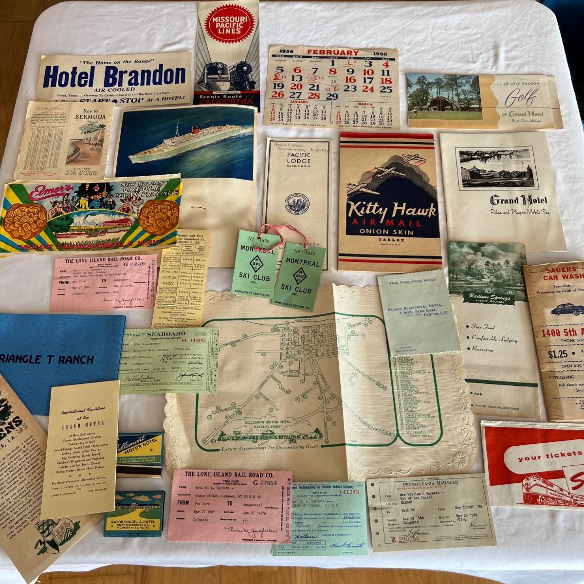 A fabulous lot of older maps, fliers, postcards, couple of matchbooks, trip passes and more. See photos for full inventory.