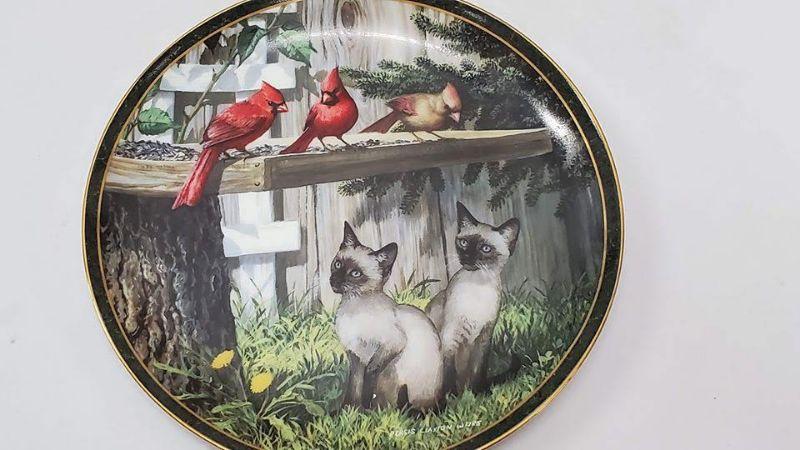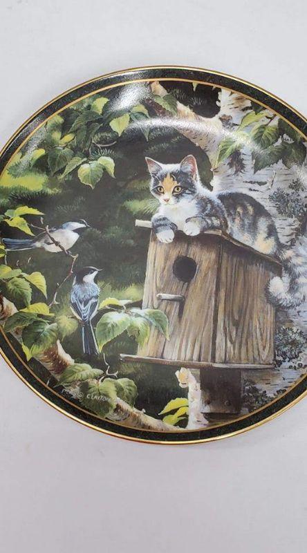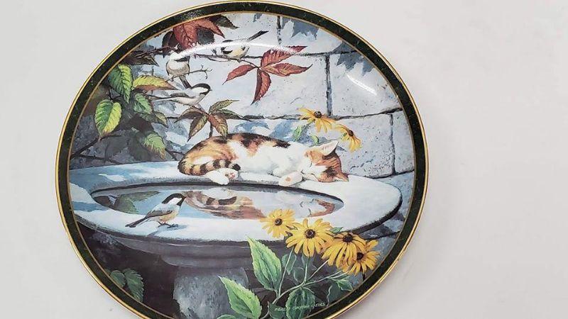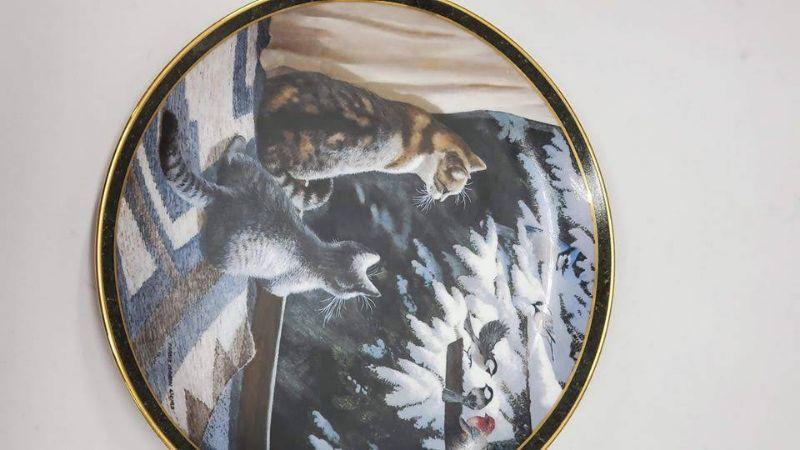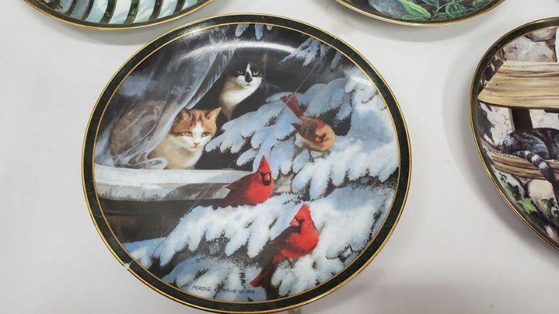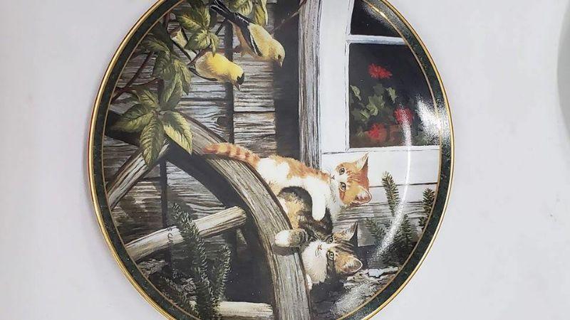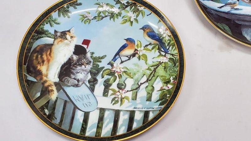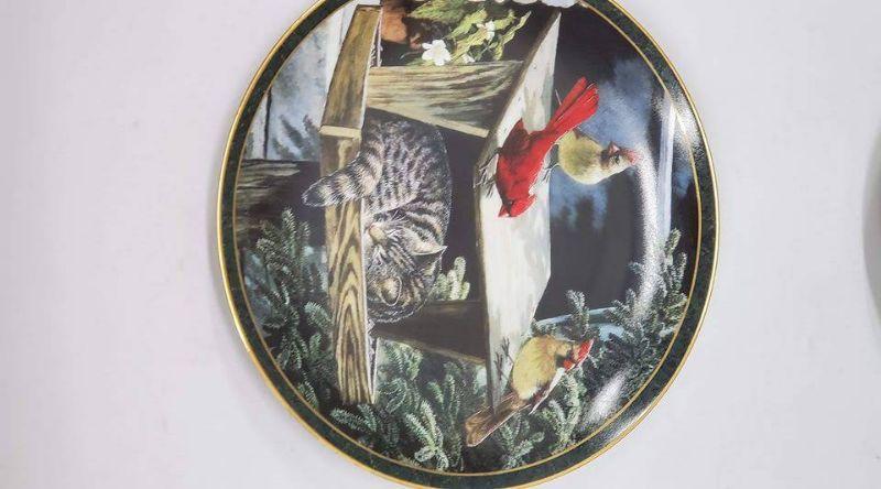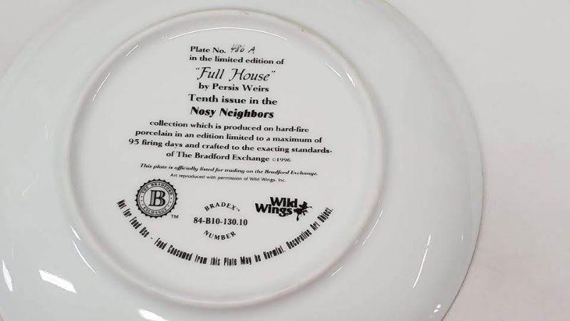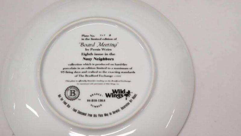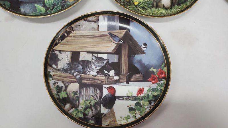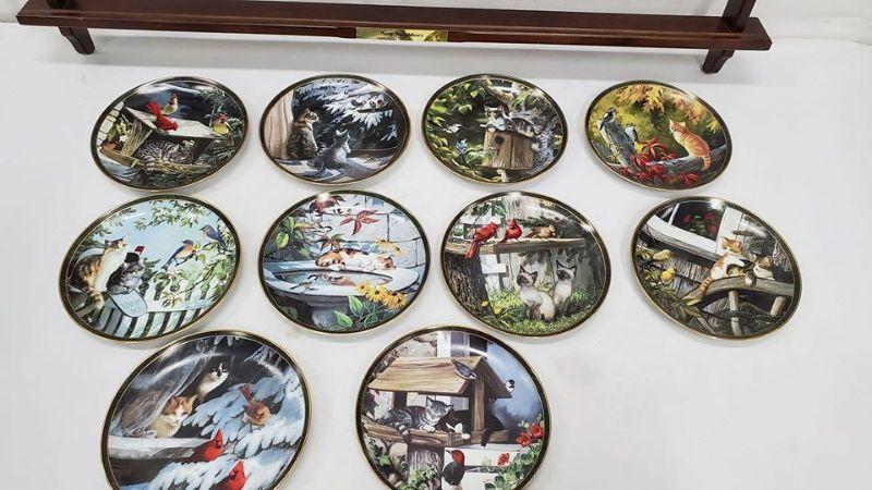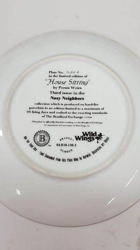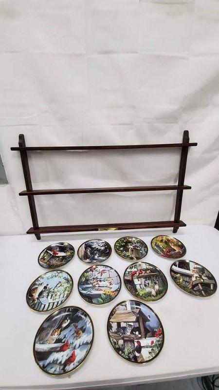 Nosy Neighbors 10 Plate Collection & Hanging Plate Stand, 1 Plate Broken & Glued