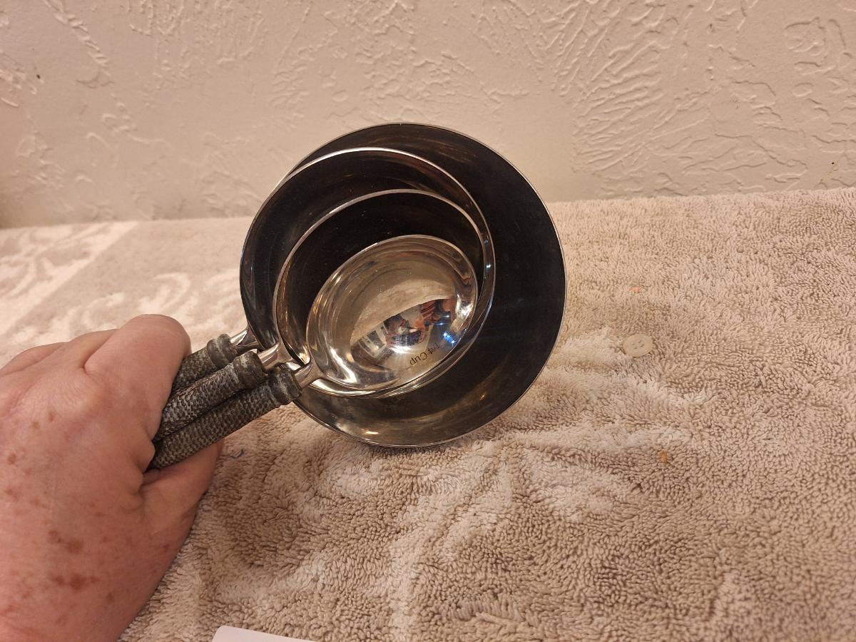 Not sure…they seem to be measuring cups but have no markings, they are heavier than typical as well.