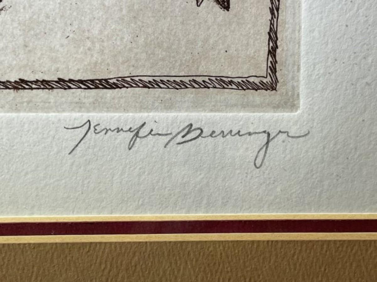 Noted Artist Jennifer Berringer Original Pencil Signed Etching Limited Edition 3/400 Frame Size 15" x 17" in Good Preowned Condition. $18 Domestic Shipping.