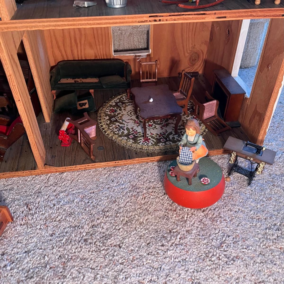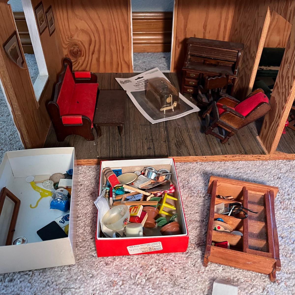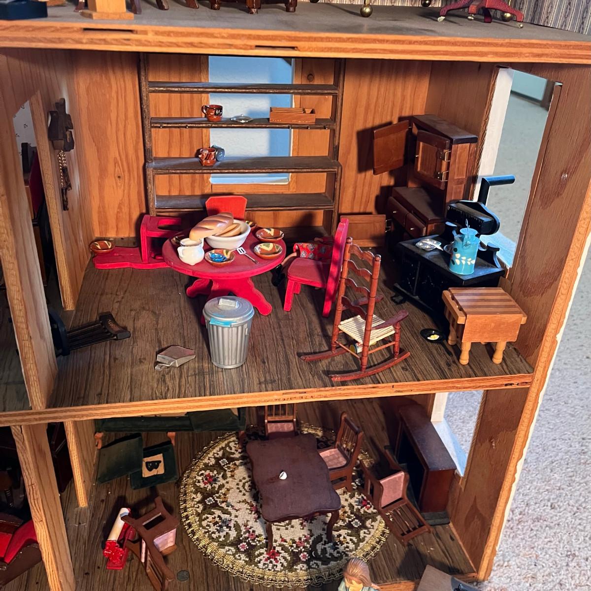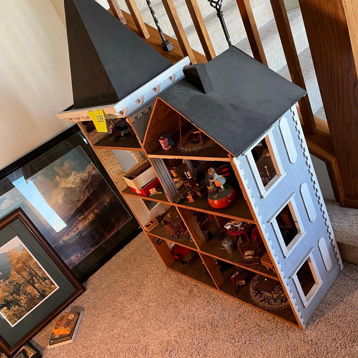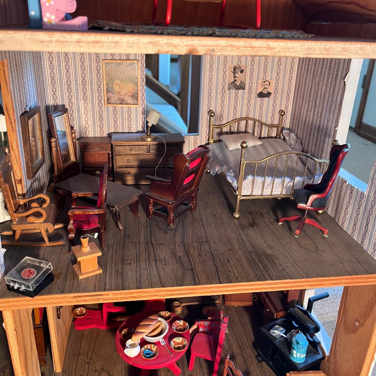 This is a custom made doll house, chalk full of furniture and dolls! This thing is quite tall, sorry we didn't get a picture of the front. This is well made and ready for the next generation to play with!