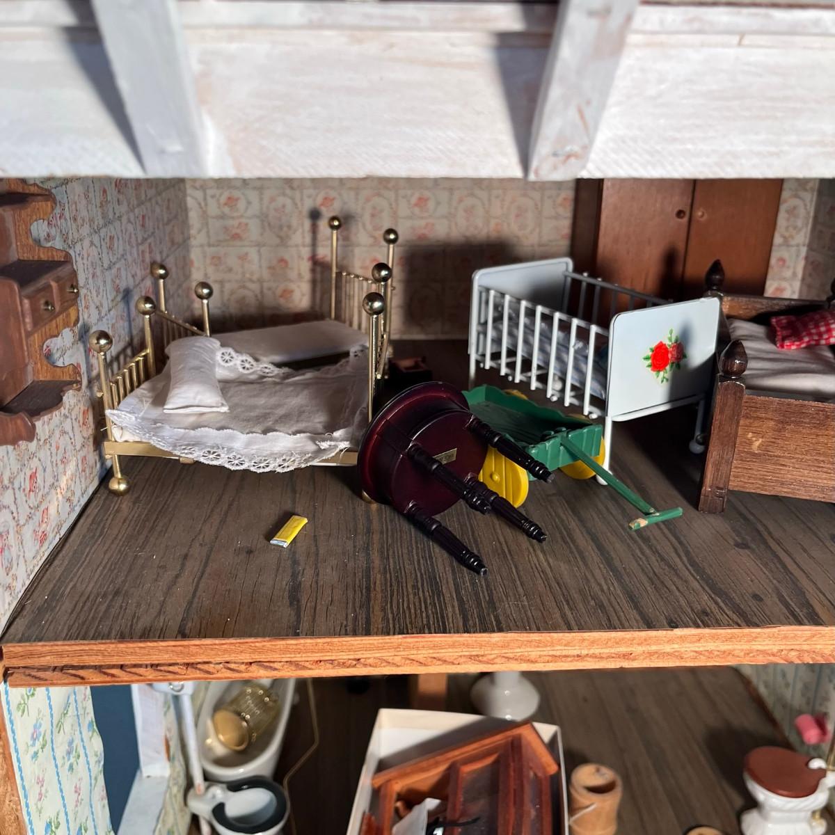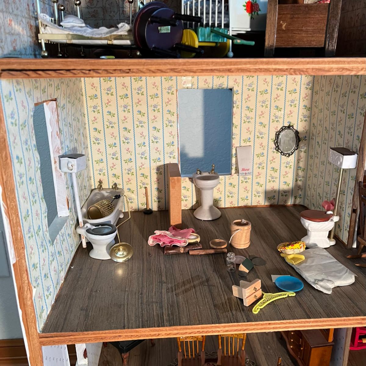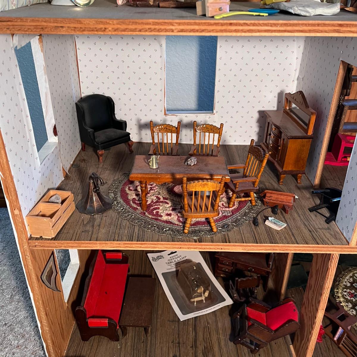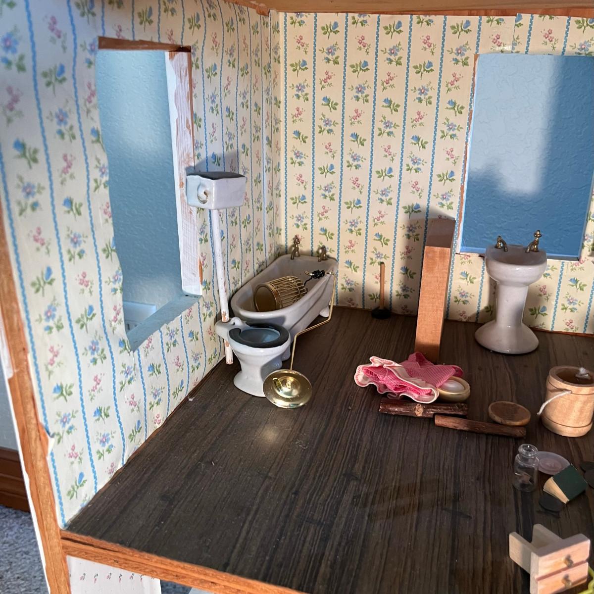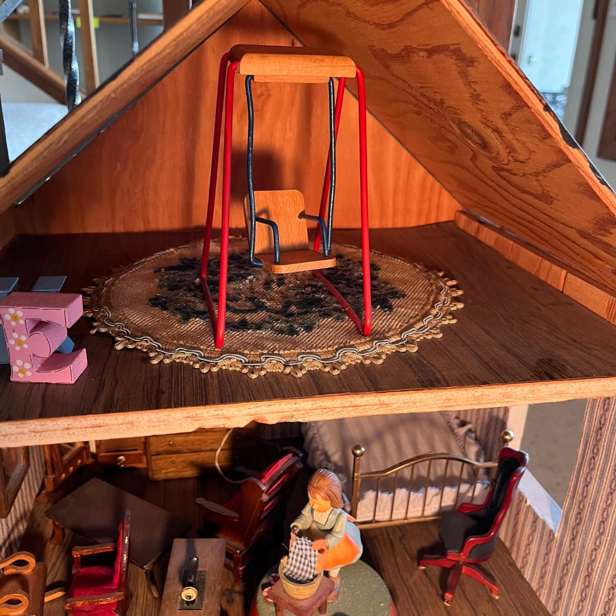 This is a custom made doll house, chalk full of furniture and dolls! This thing is quite tall, sorry we didn't get a picture of the front. This is well made and ready for the next generation to play with!
