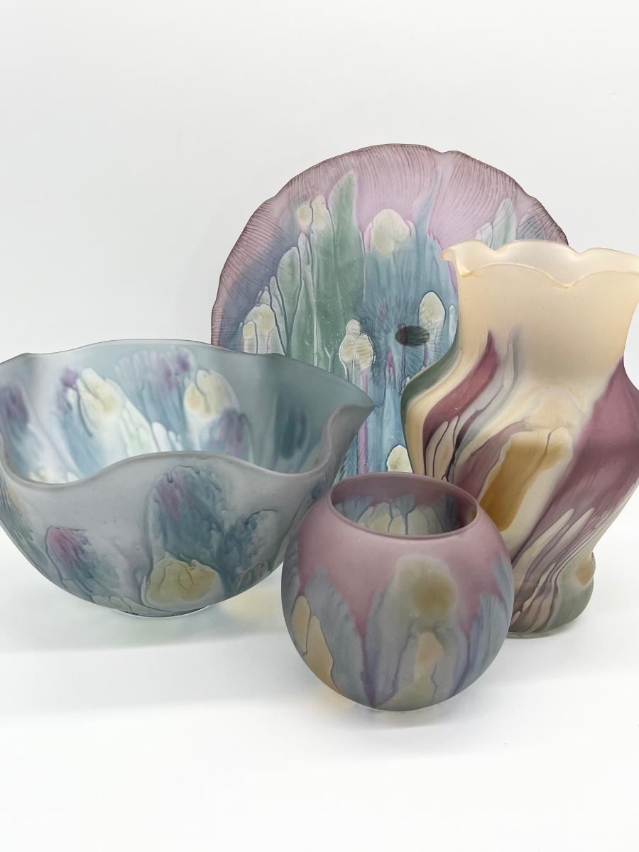 NOUVEAU ART GLASS ~Hand Painted By Rueven ~ Four (4) Pieces