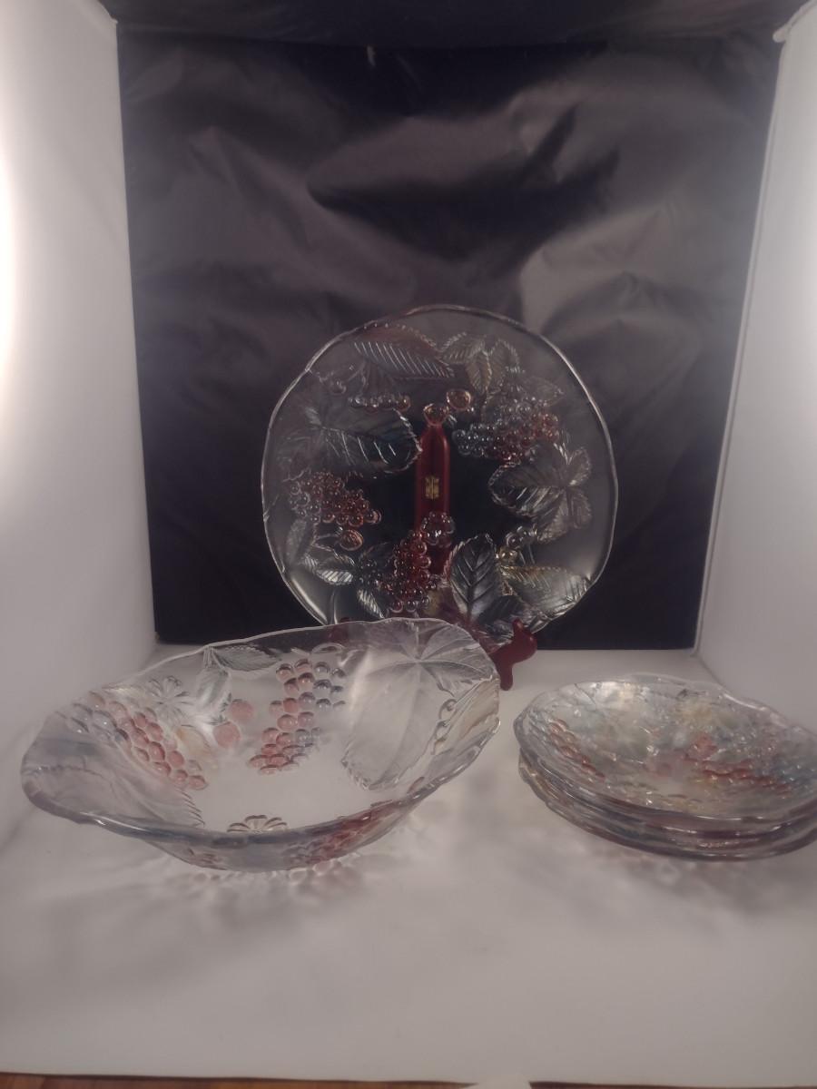 Nova Studio 'Wild Berries' Glass Platter and Salad Set- 6 Pieces Total