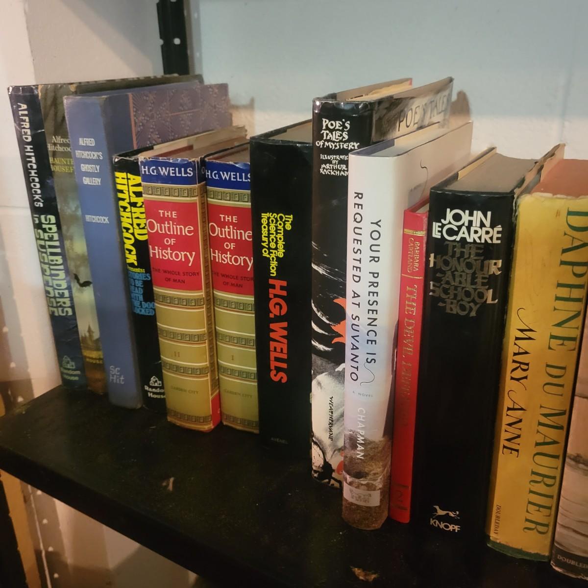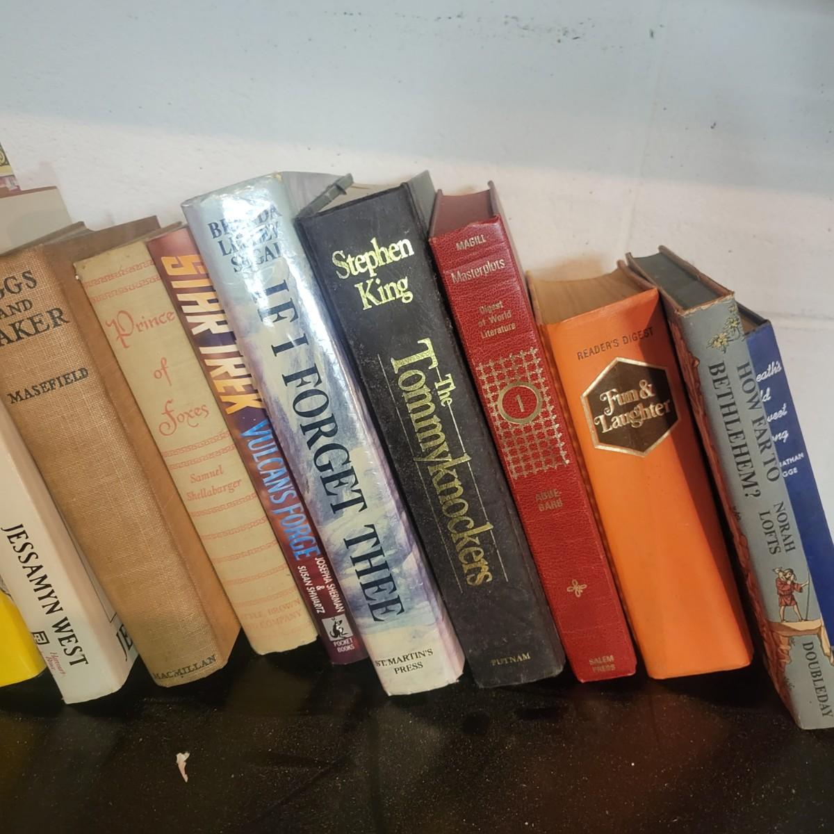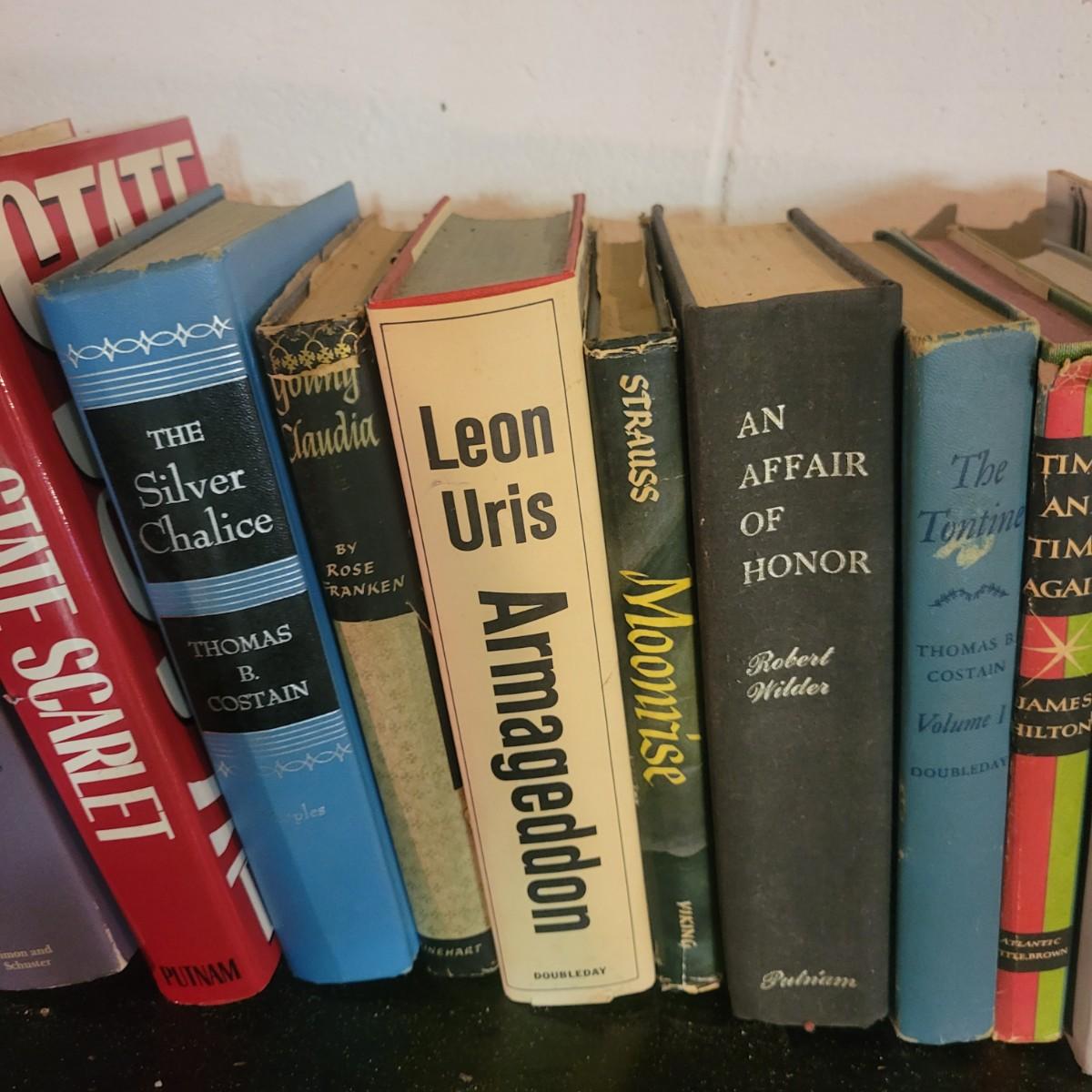 A large assortment of novels in good condition, but they do have a musty smell from storage in a basement. Authors include Leon Uris, H.G. Wells, Robert Rouark and more. There are some older vintage books in this assortment. Local pickup only