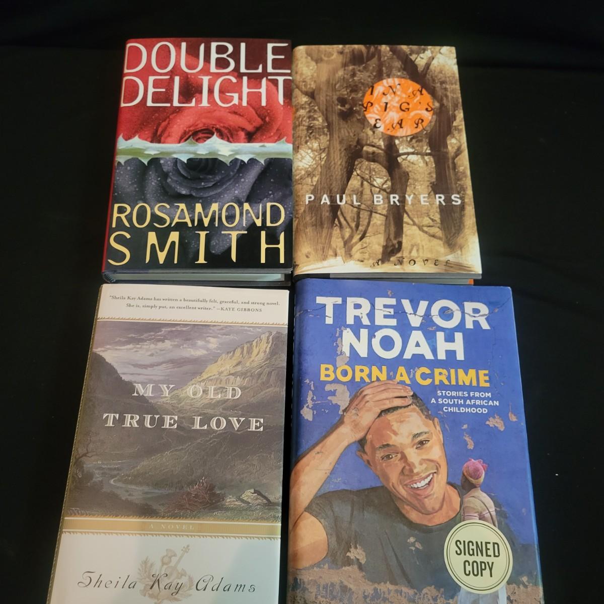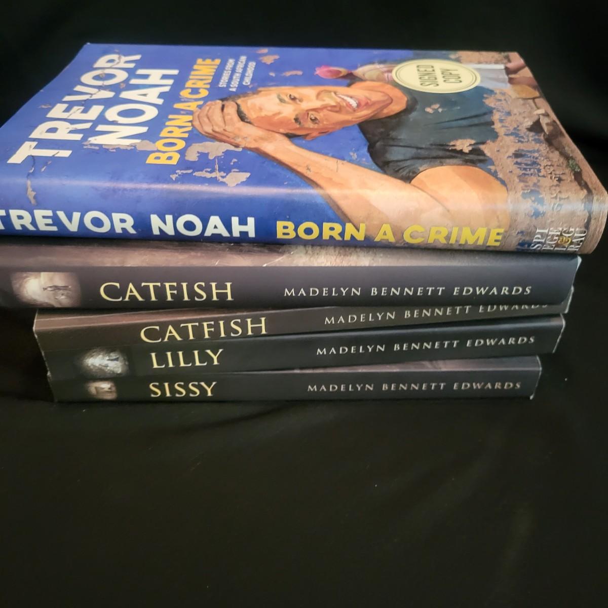 An assortment of novels, five of which are signed. The last picture shows which ones are autographed. Authors included are Trevor Noah, Madelyn Bennett Edwards, Rosalind Smith and more.