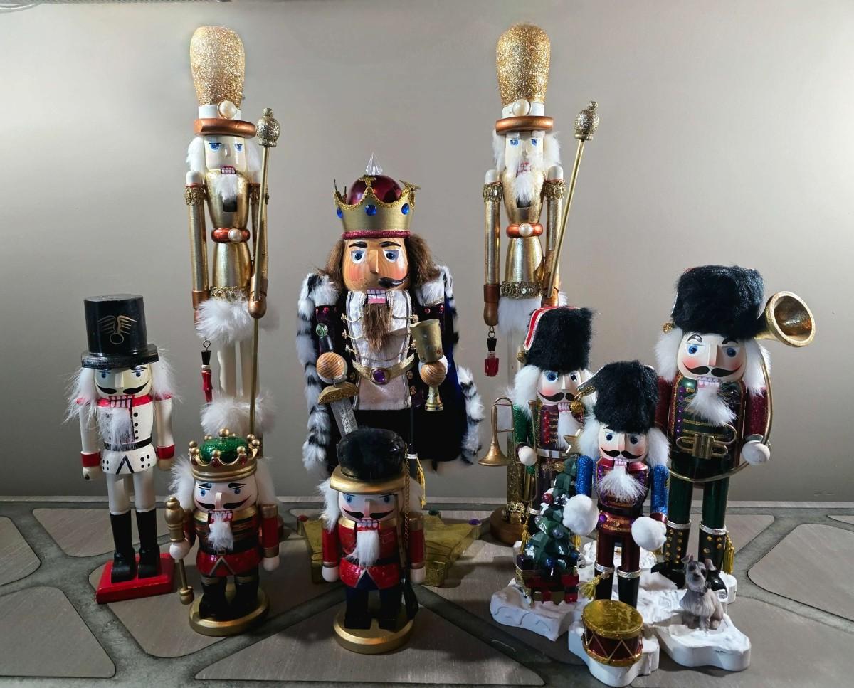 Novelty Nutcracker lot includes various sized Nutcrackers. None of these are German, they are simply novelty, and some may have minor flaws.