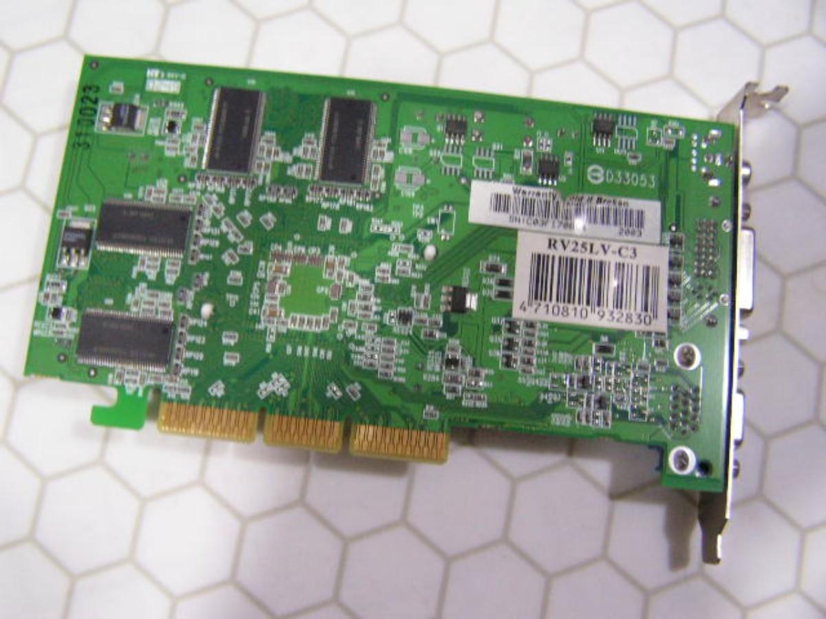 Now that's an AGP video board mate. ATI RADEON 9000 PowerColor 128MB DDR TV/DVI/VGA mod# RV25LV-C3. You'll have to download the drivers