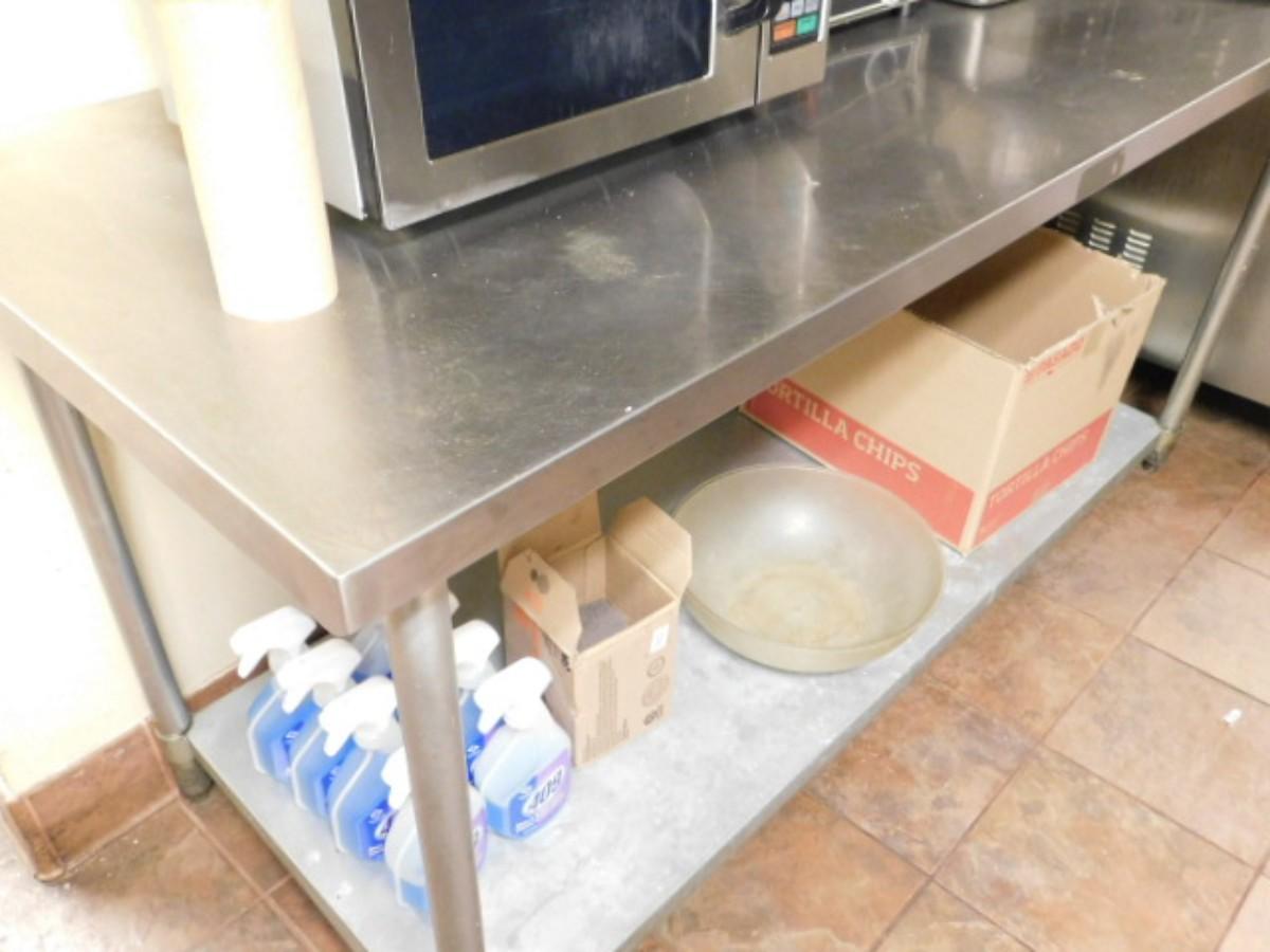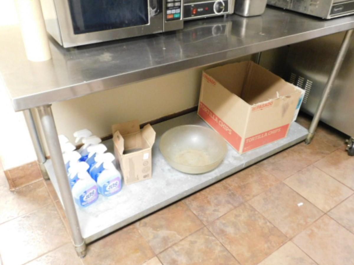 NSF Commercial Kitchen 6' Worktable with Bottom Shelf Choice C. Condition of bottom shelf may be stained. Expect some wear or scratches to finish. Shipping option available via freight or local mover at Buyer's expense. Buyer must have all shipping scheduled within the stated dates and times of pickup. Recommended local mover is Beaty Bros. Moving 828-201-2982