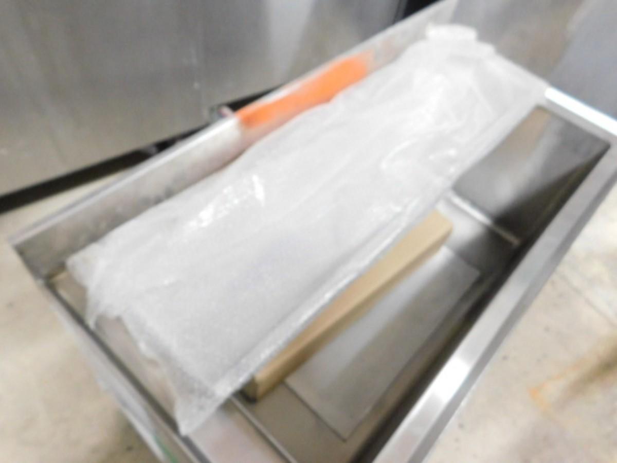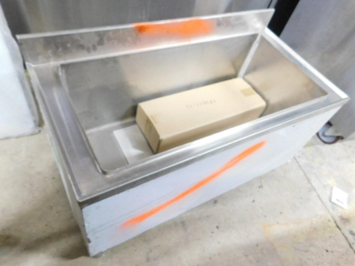 NSF Stainless Commercial Back Bar Ice Bin Choice A. Appears to be unused condition. This unit has the slide lid Shipping option via freight or local mover is Buyer's responsibility and expense. Buyer must have all shipping scheduled within the stated dates and times of pickup. Recommended local mover is Beaty Bros. Moving 828-201-2982