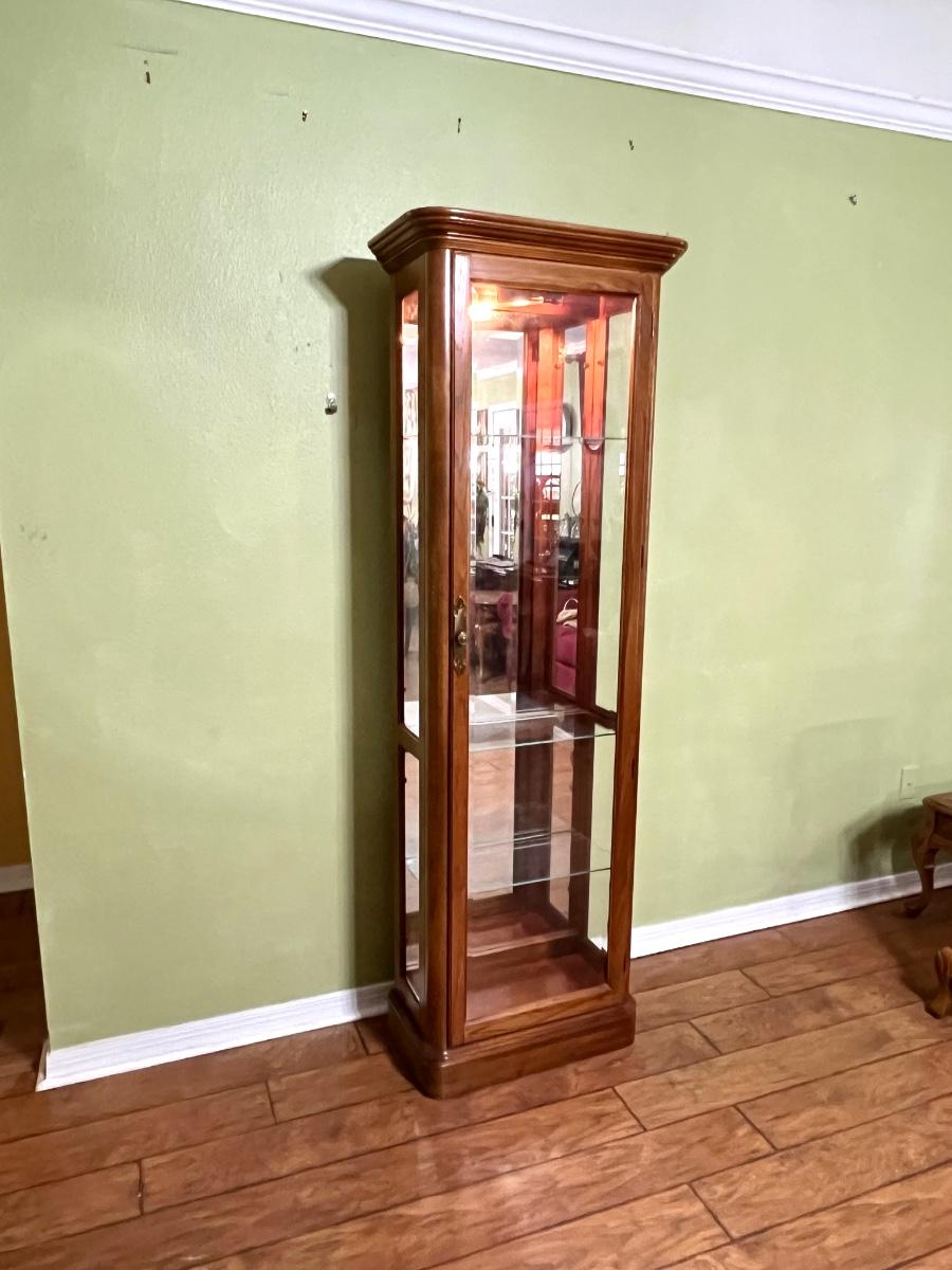 PULASKI FURNITURE CO ~ Oak Beveled Glass Door Lighted Curio Cabinet