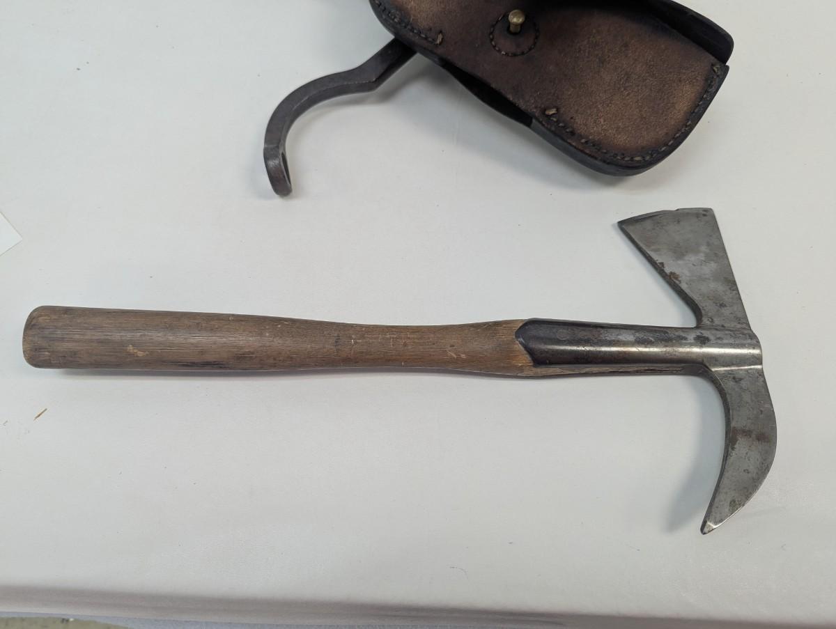 New South Wales Fire Brigade (NSWFB) Belt and Hatchet and a Cast Iron Spanner Wrench