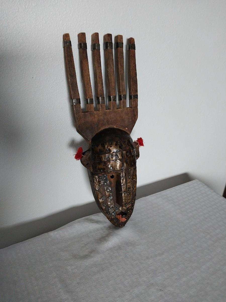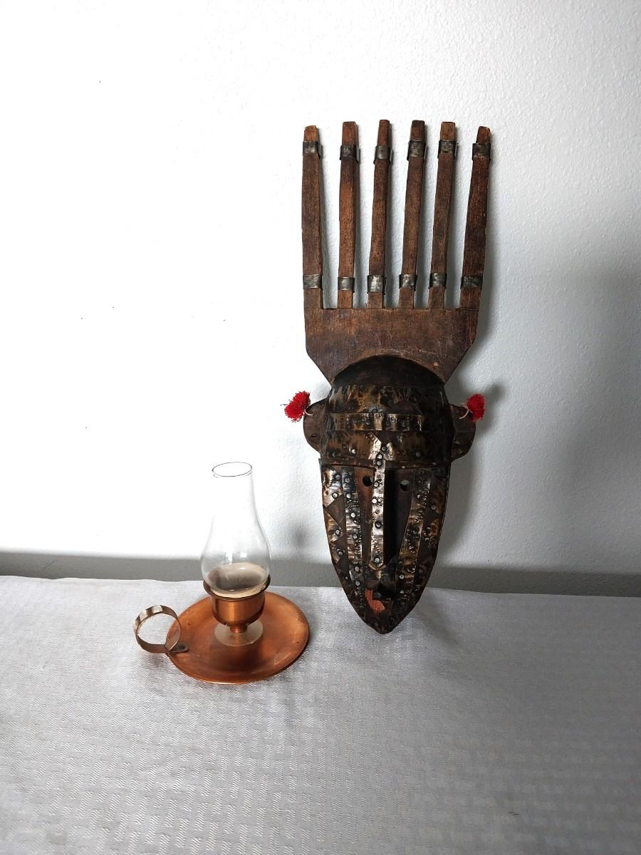 N'TOMO WOODEN MASK AND COPPER BASED OIL LAMP