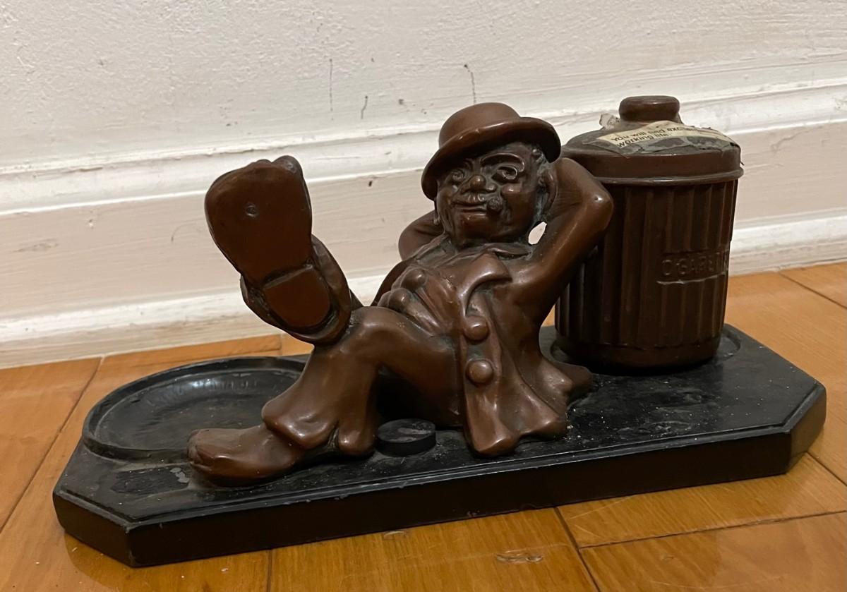Description: NUART HOBO smoking a cigar/ HeavyMeasurement approximate: 4 H Male figure/ 3 H for the containerMaterial: Spelter