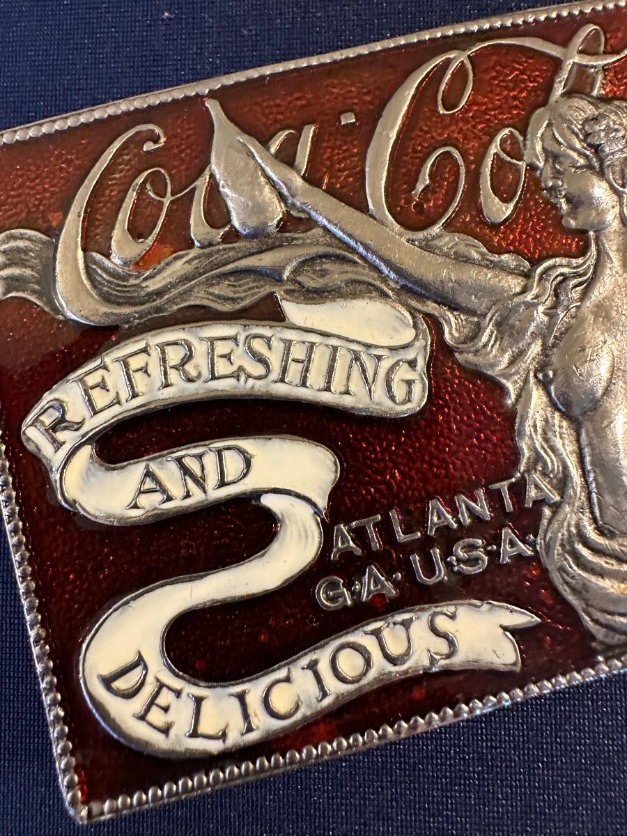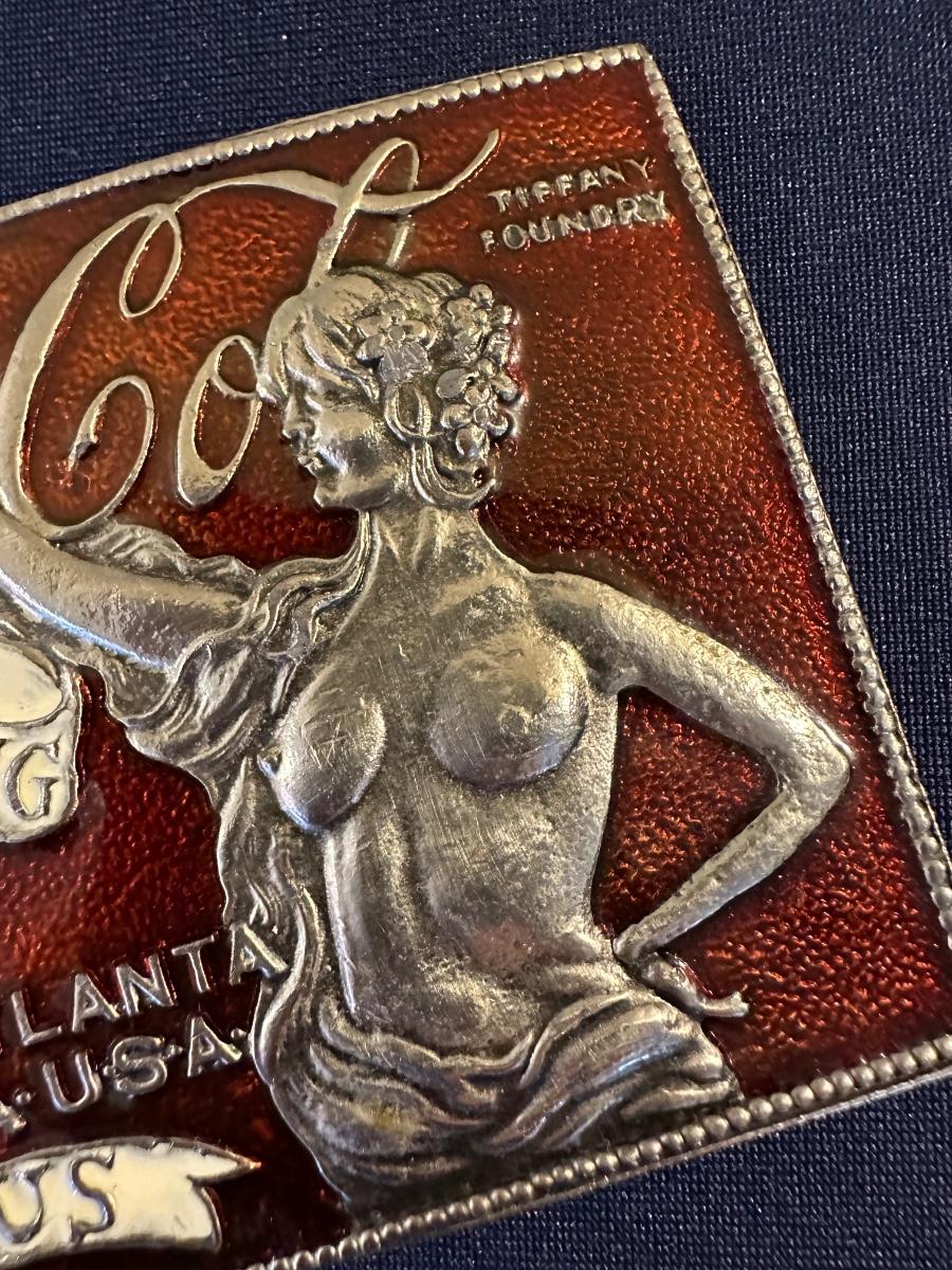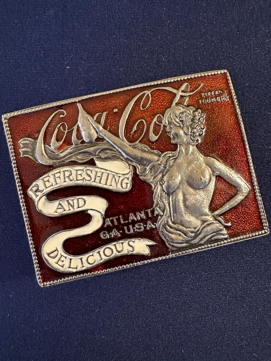 NUDE COCA COLA BELT BUCKLE RED ENAMEL TIFFANY FOUNDRY