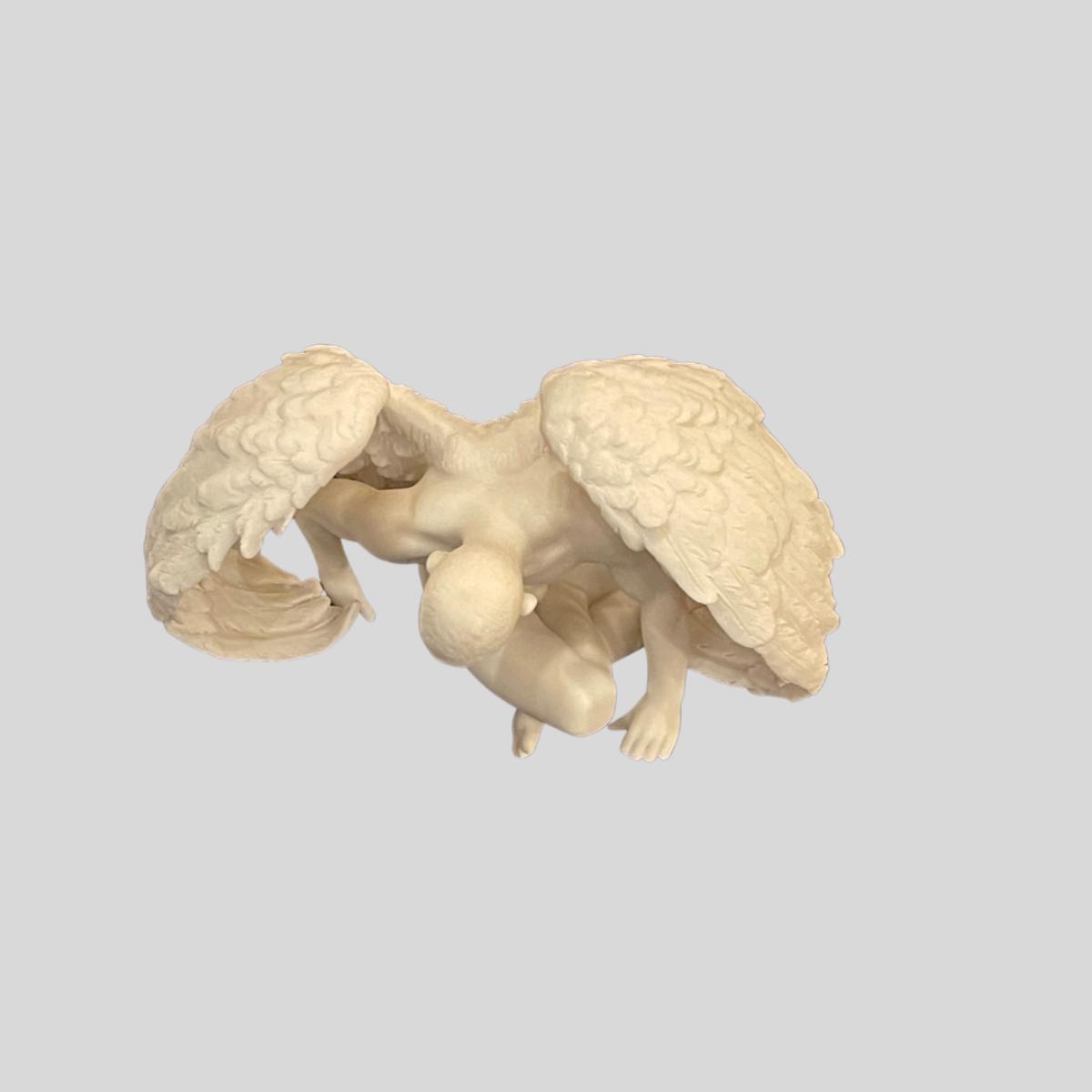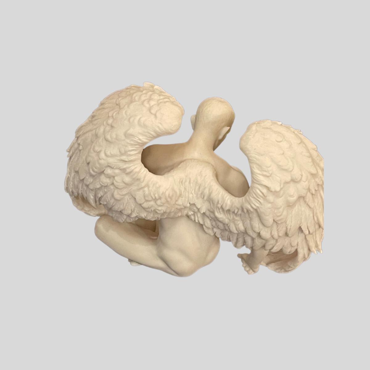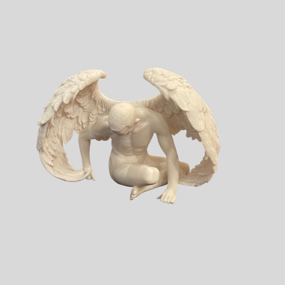 Nude Winged Grieving Male Angel Alabaster Statue - 8" x 5"