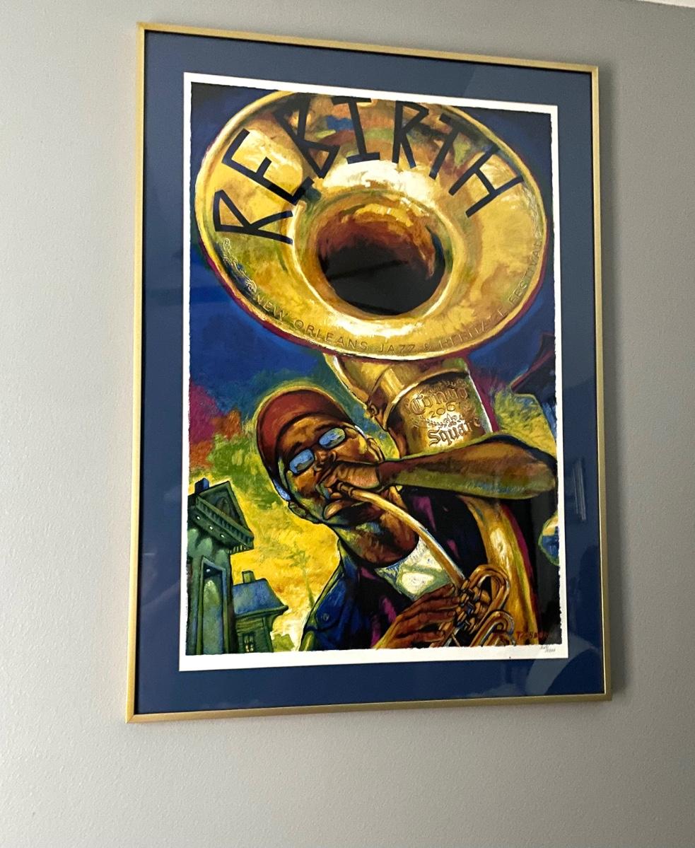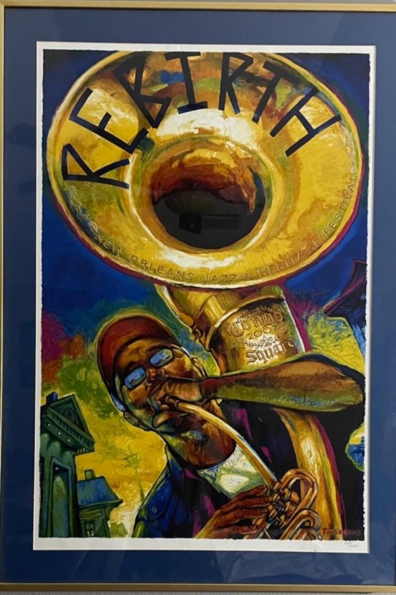 TERRANCE OSBORNE JAZZ FEST & HERITAGE NUMBERED 569/5000 yearly 2007 REBIRTH. Measures 40 Inch long and 28 inches Wide