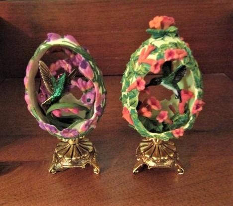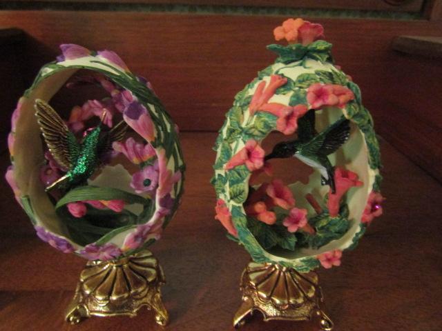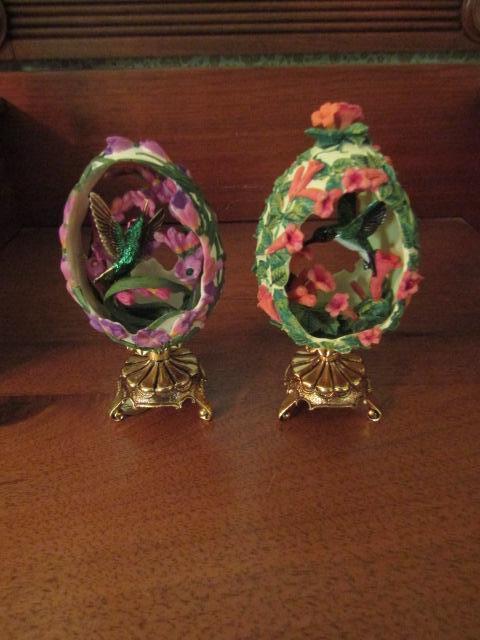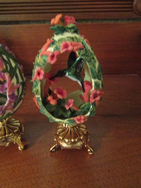 Numbered Collectible Hummingbird Theme Eggs with Metal Stands by House of Faberge.