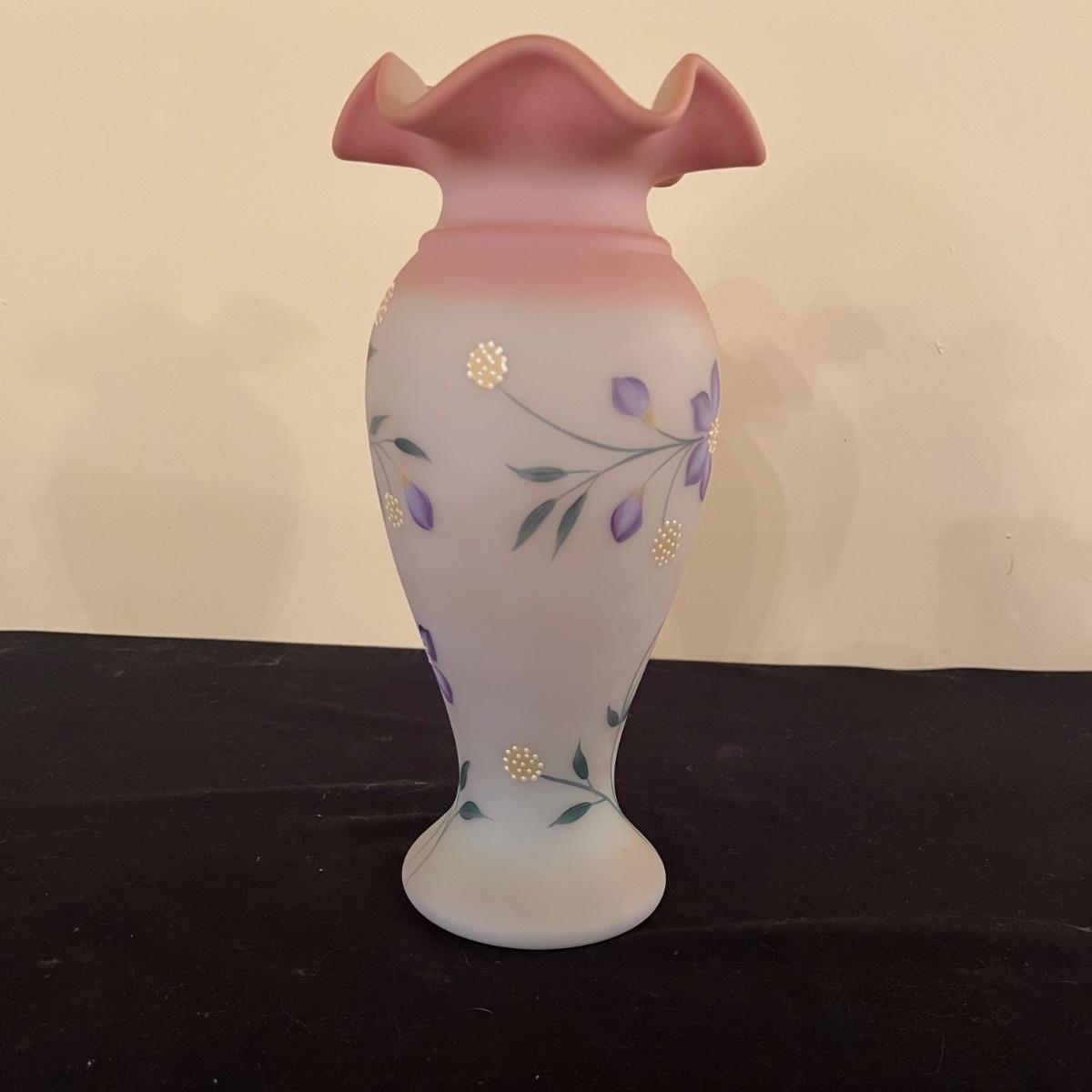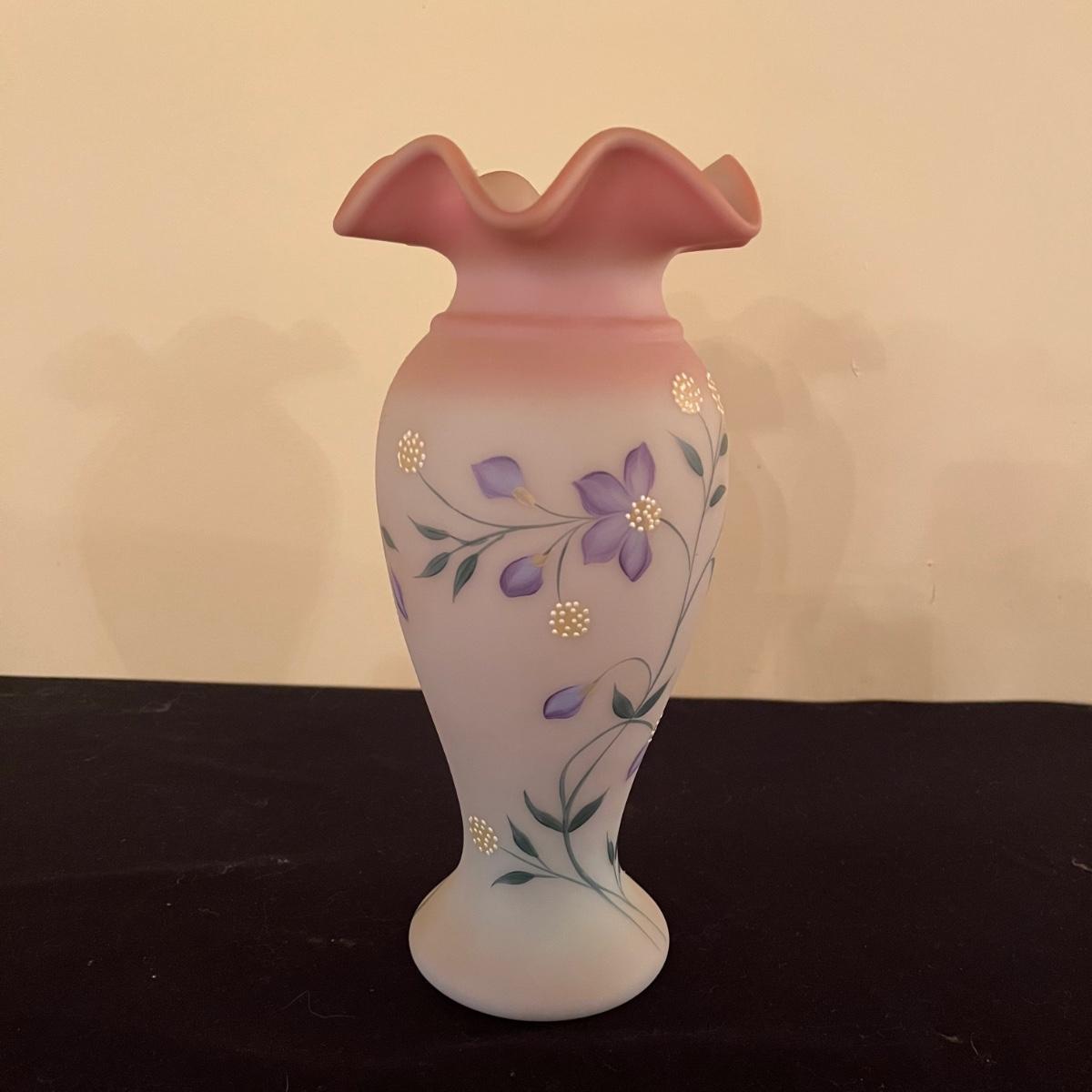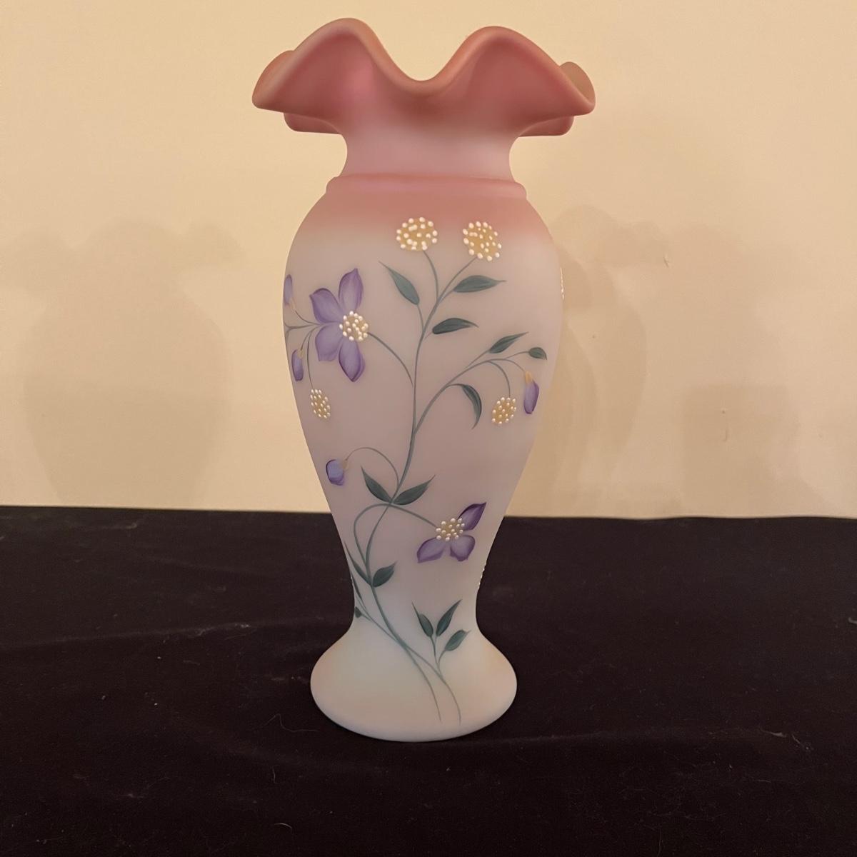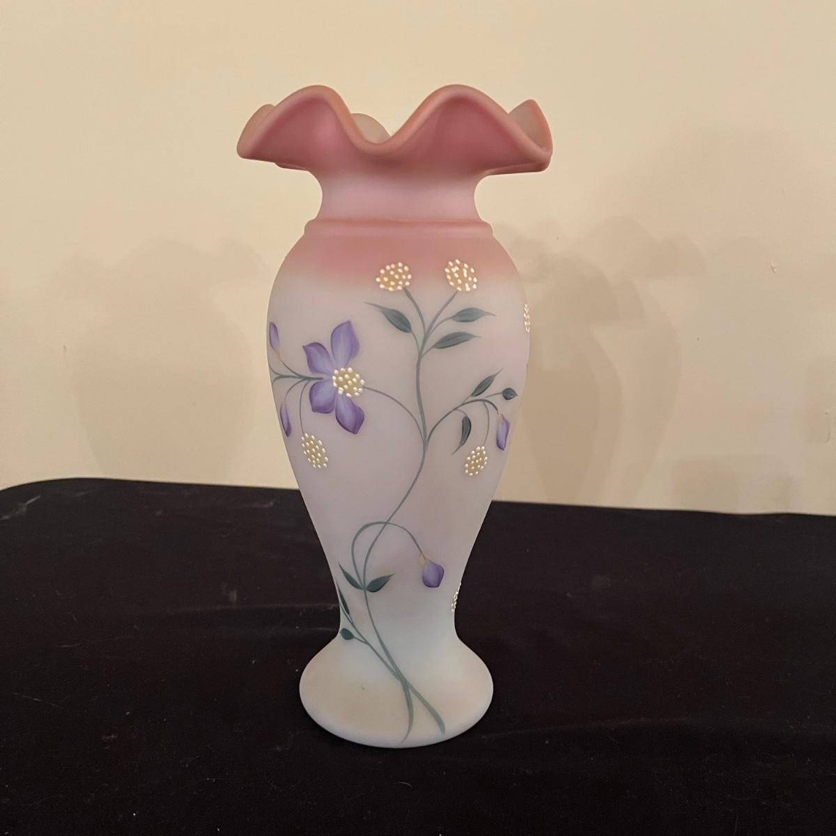 Lot includes a numbered and hand painted vase that measures 5.25” x 10”tall. It is in excellent condition.