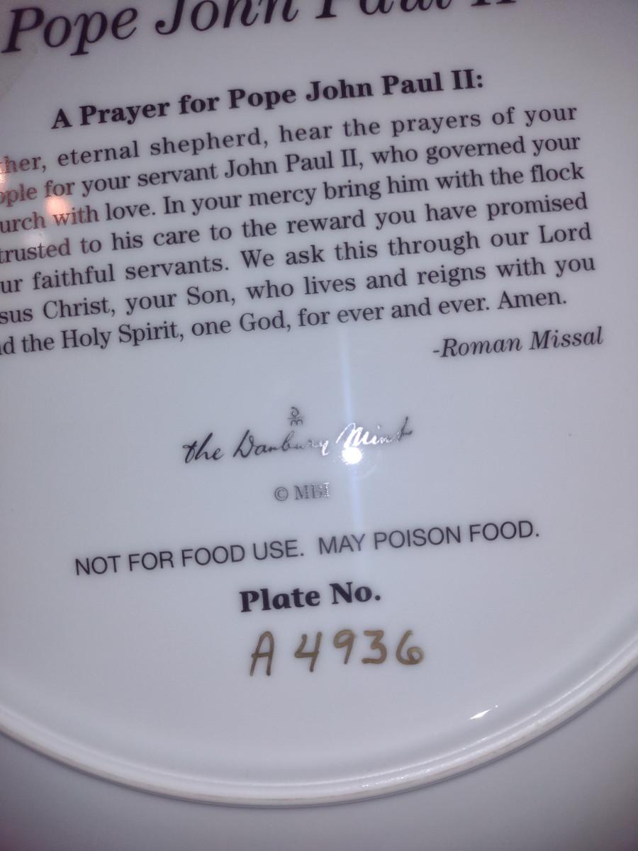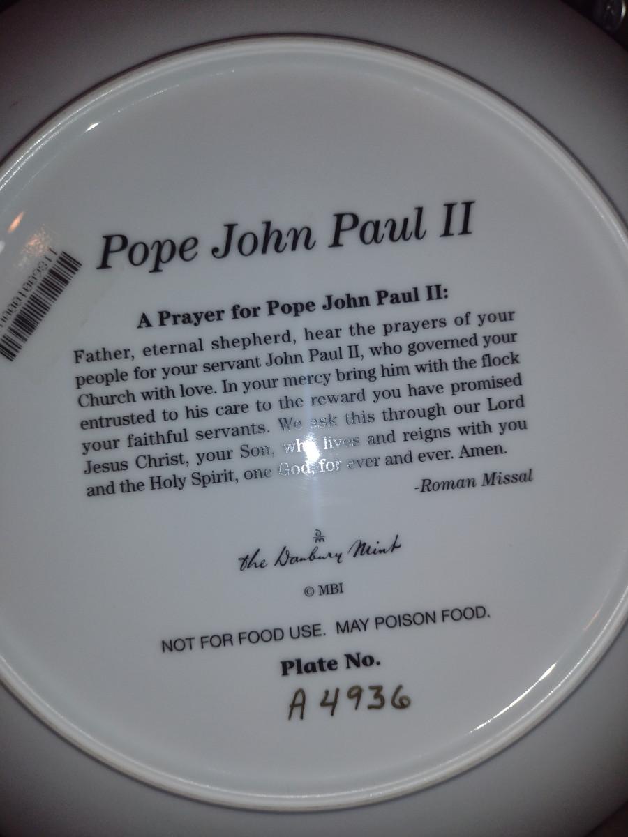 Numbered Pope John Paul II Commemorative Plate- By The Danbury Mint