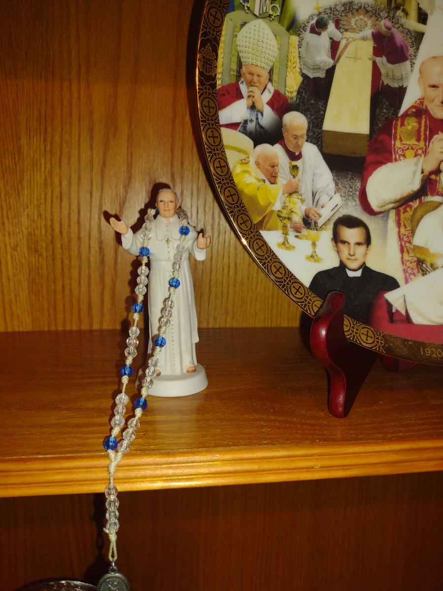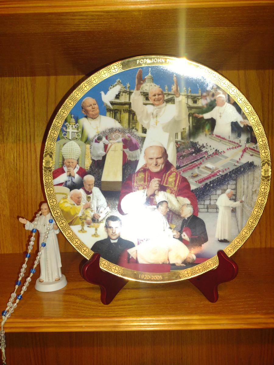 Numbered Pope John Paul II Commemorative Plate- By The Danbury Mint. Includes small figurine and rosary.