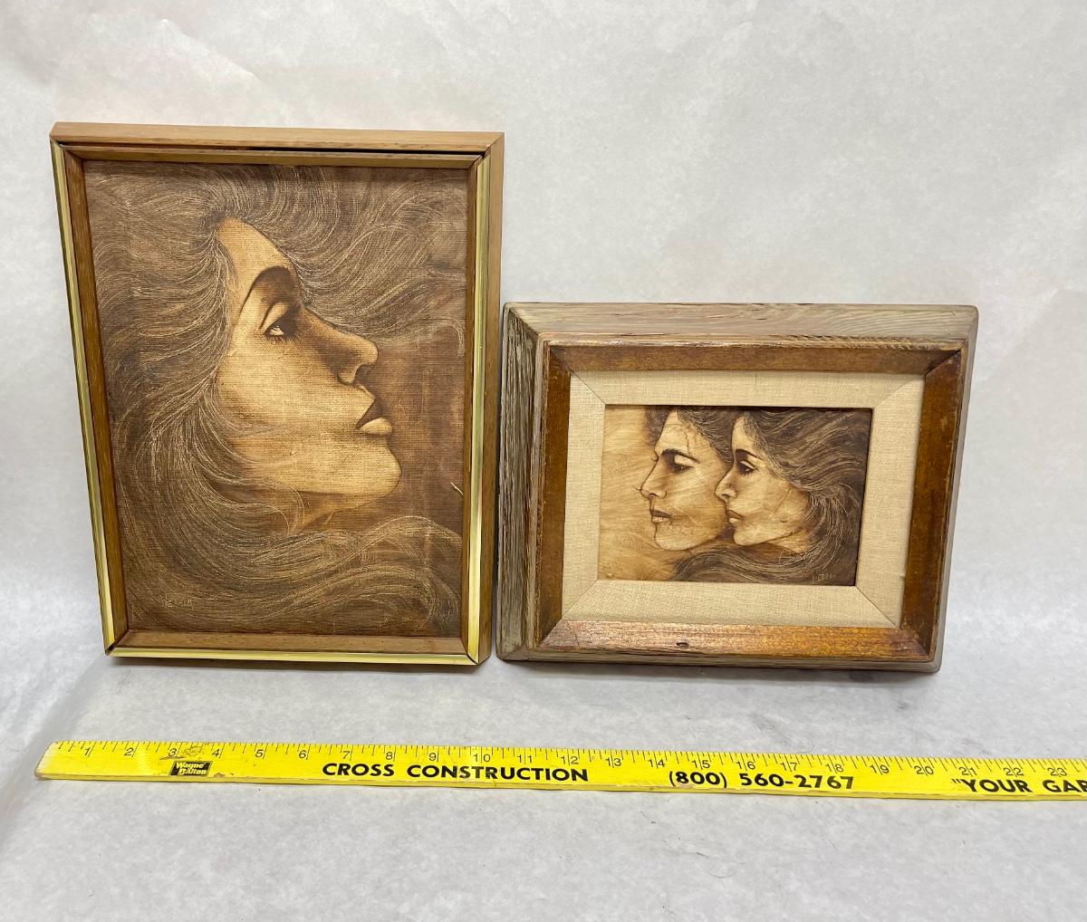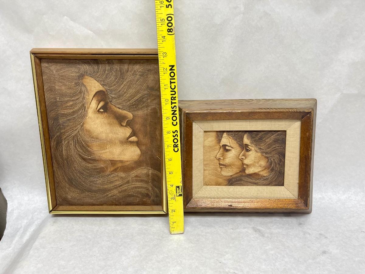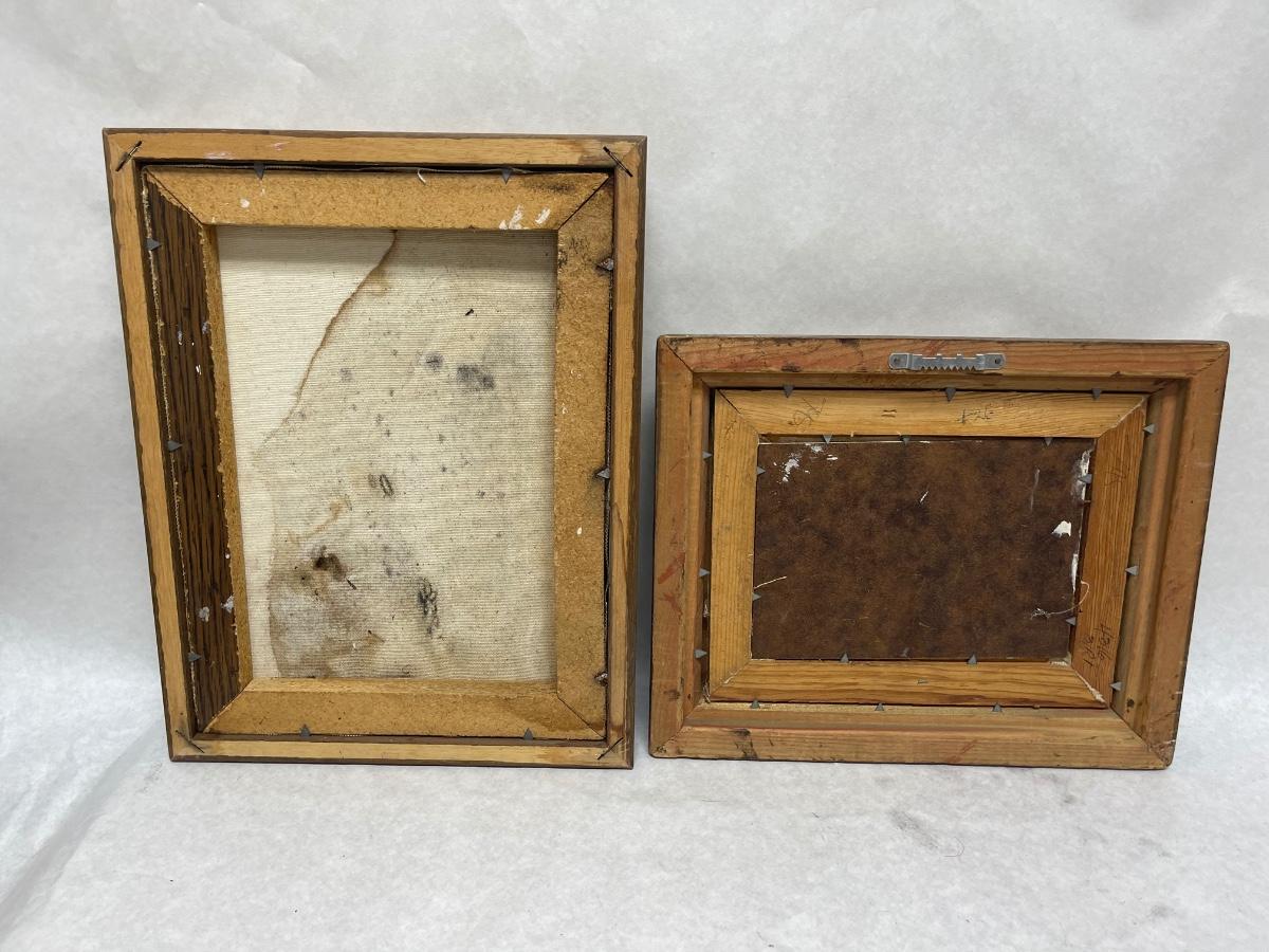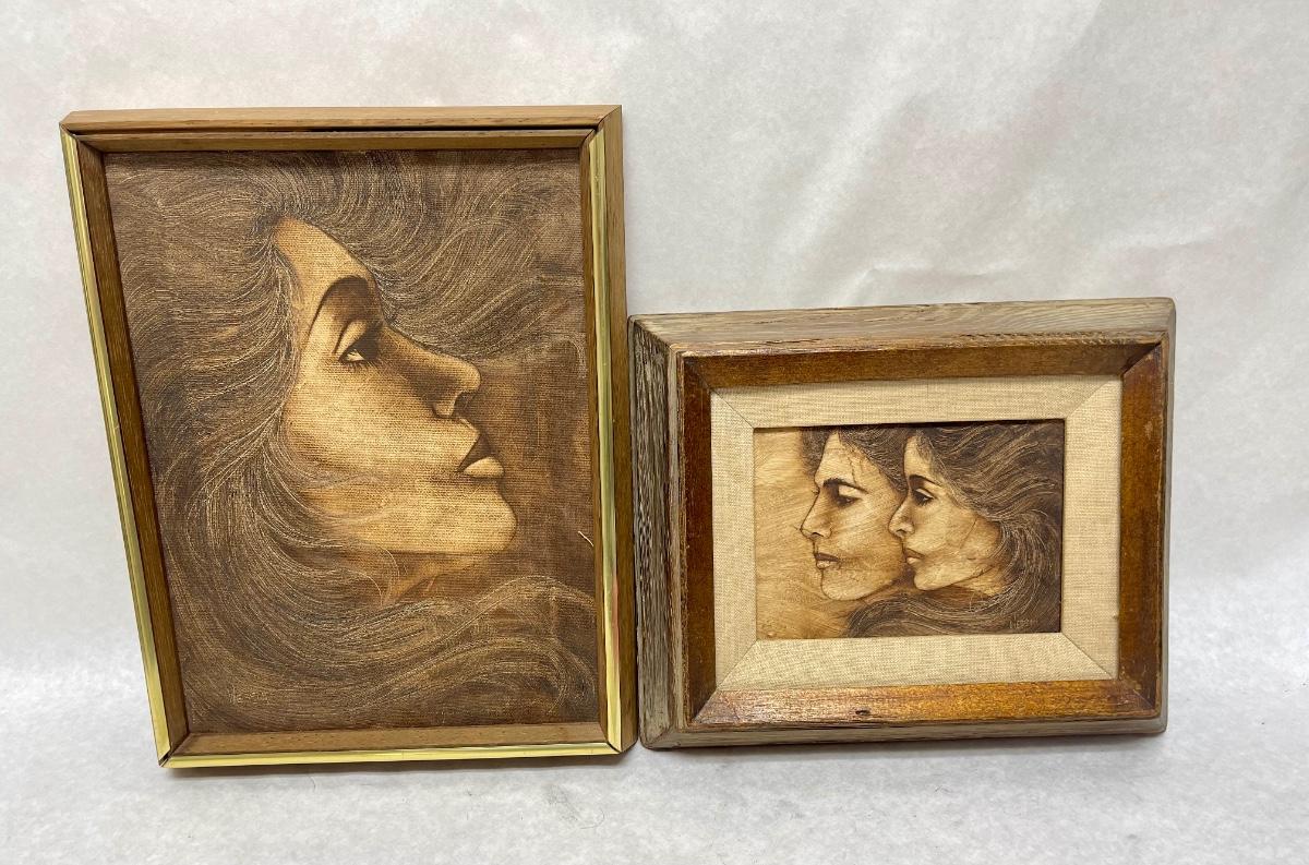 One is ink & pen on masonite (approx. 12" x 9"), the other is ink & pen on canvass (approx. 10" x 13"). Very good condition, both by the same artist.