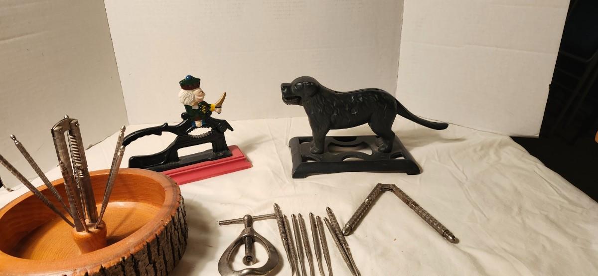 Nutcracker lot including, VINTAGE CAST IRON DOG NUTCRACKER SAINT BERNARD DOG BLACK