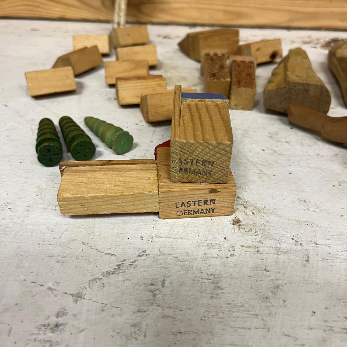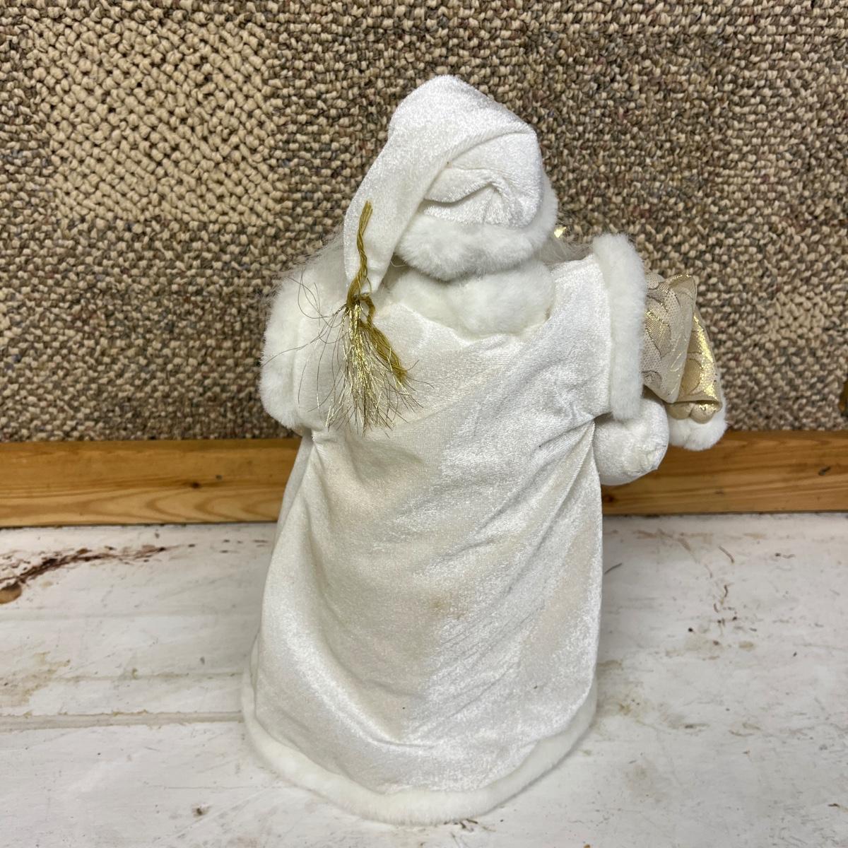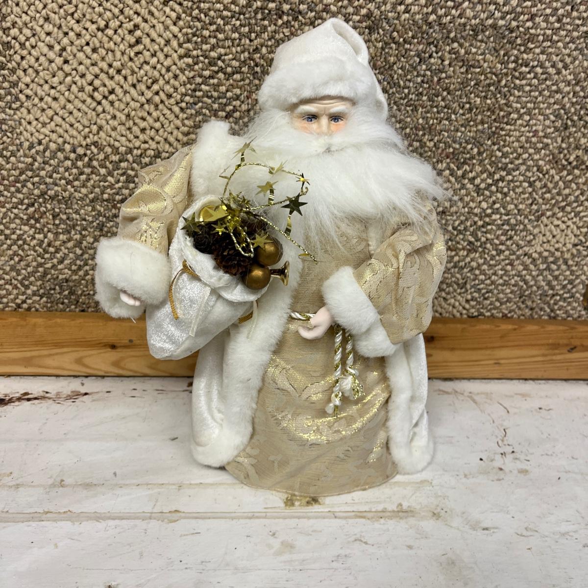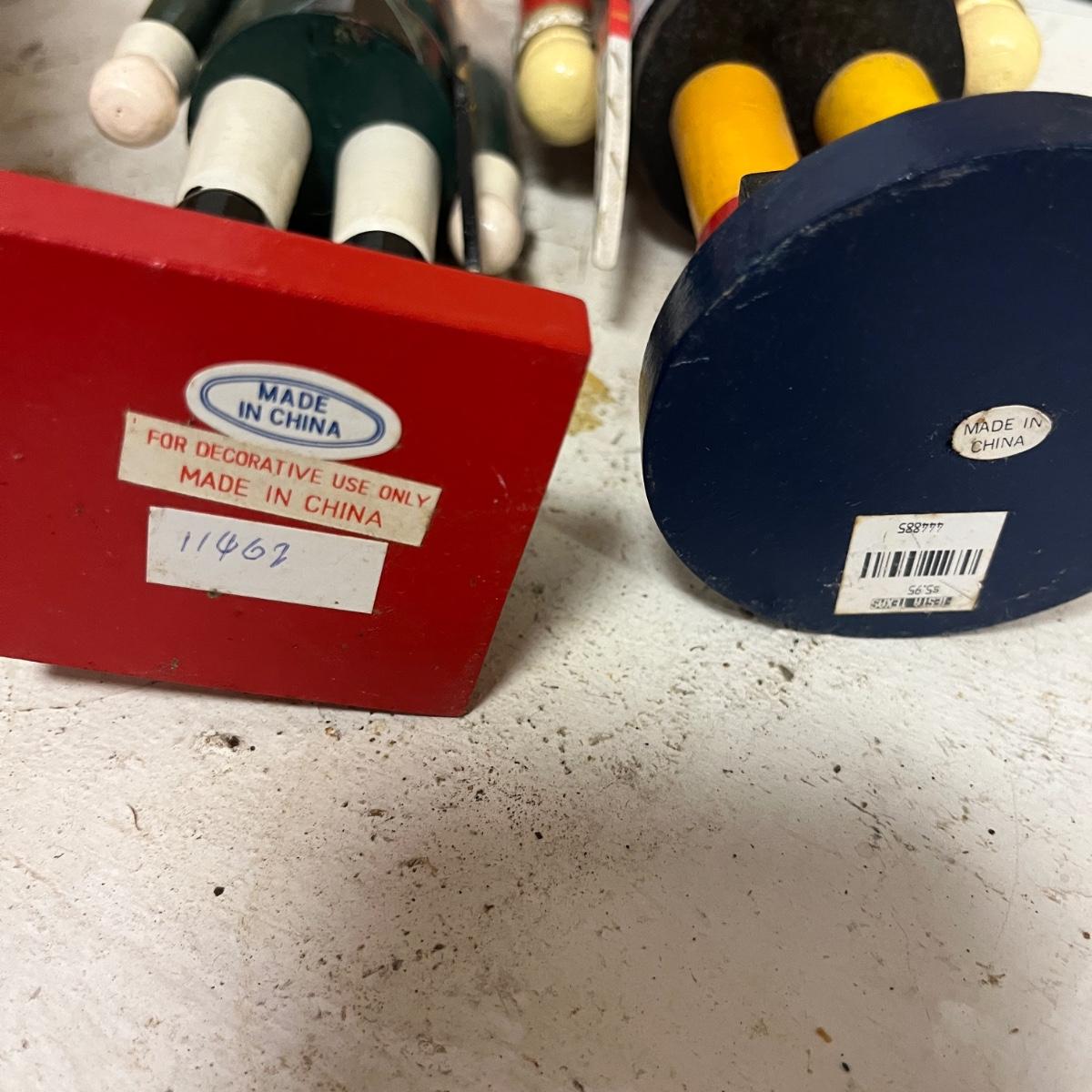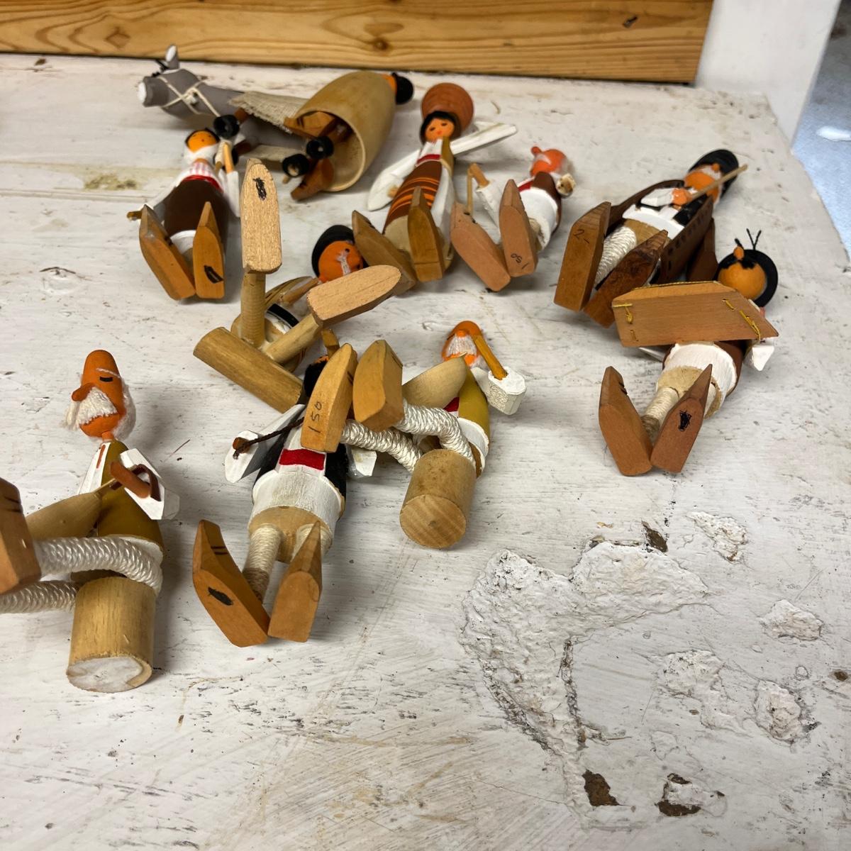 Lot includes three wooden nutcrackers, tree topper, 12 craft ornaments, selection of wooden nativity pieces, Santa resin figurines and more. Largest nutcracker measures 5” x 3” x 14”H.