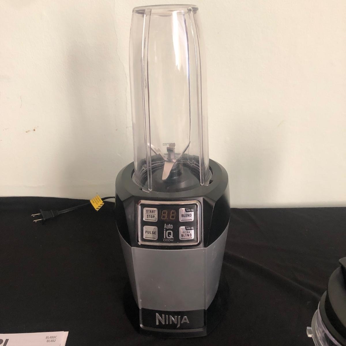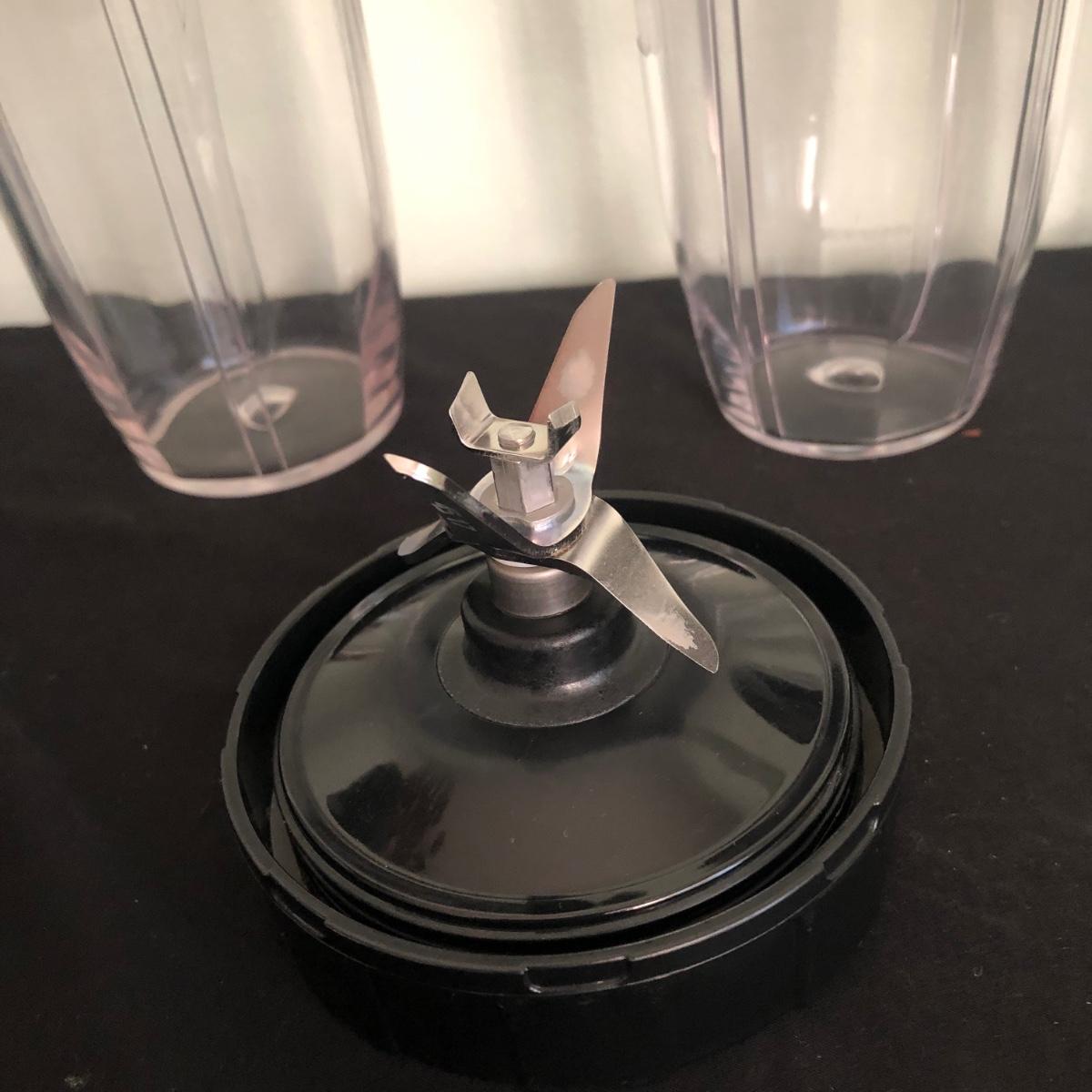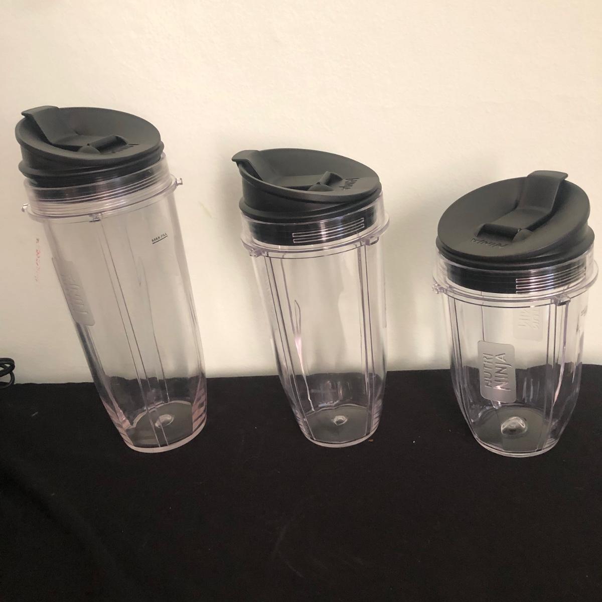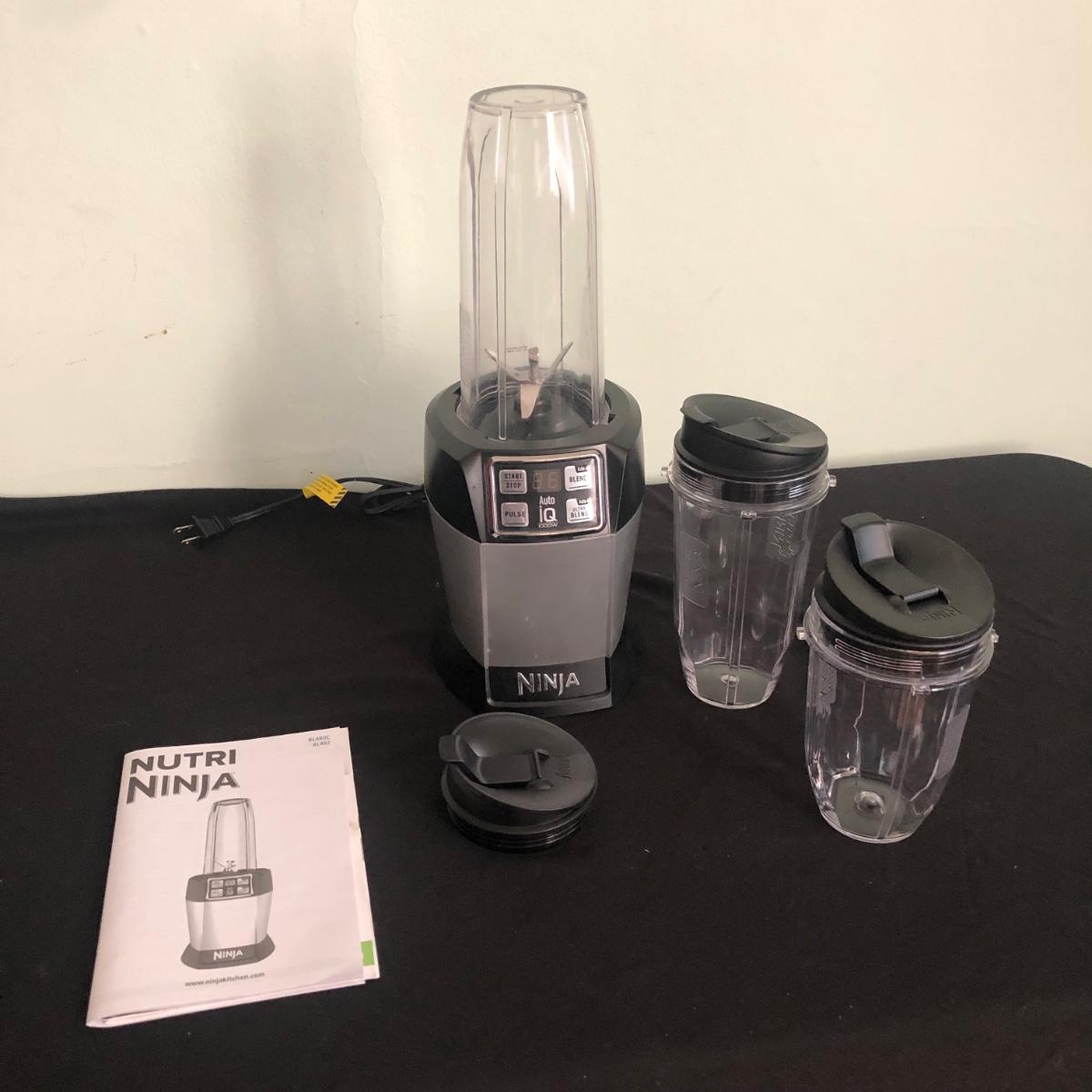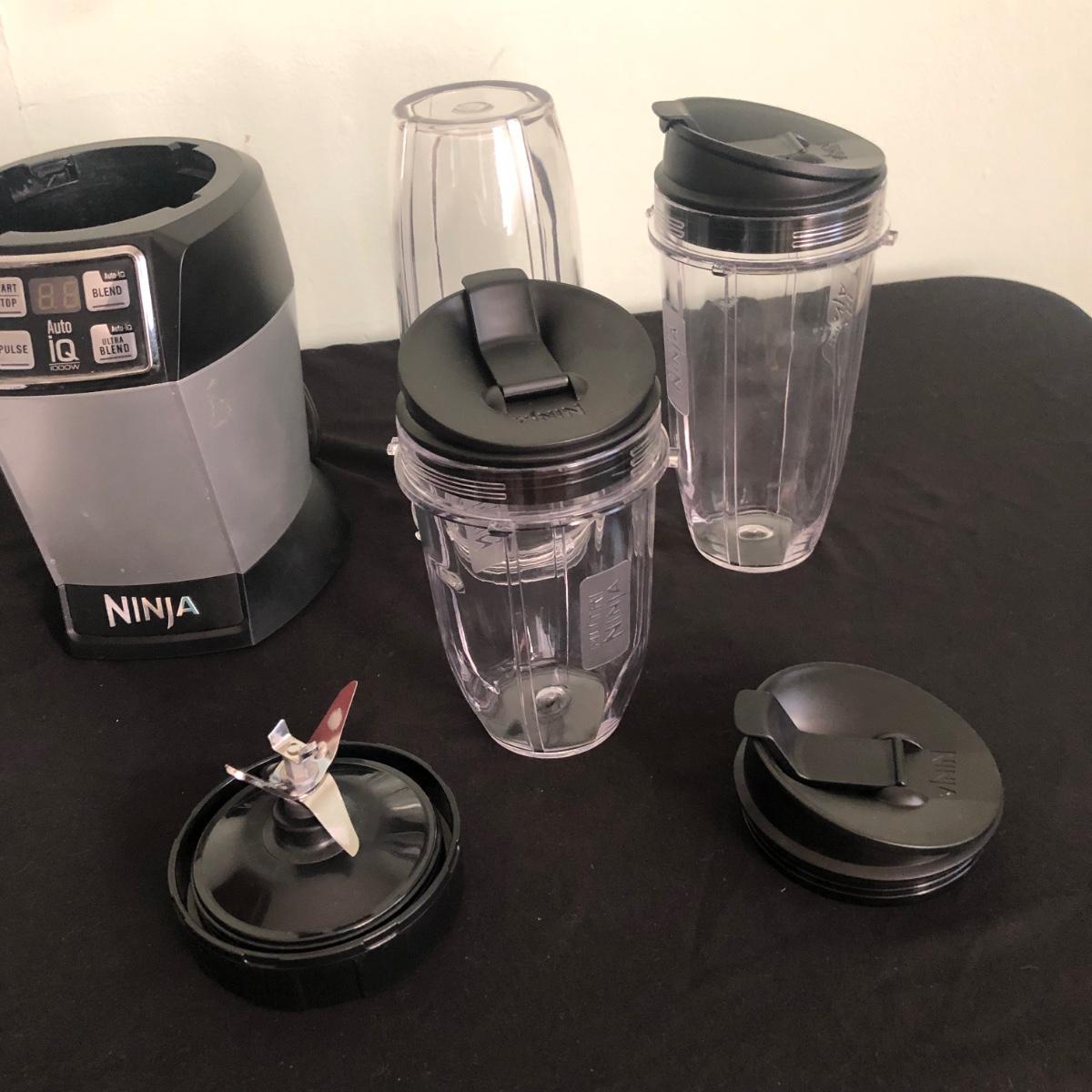 Lot includes one Nutri Ninja and three plastic cups/containers and lids. Ninja powered on when plugged in. Also, the base has suction cups to ensure it doesn’t move when using. Shipping Available.