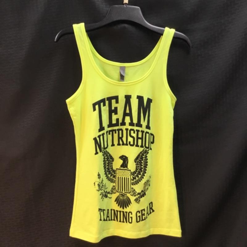Up for auction is a Nutrishop promotional tank top. It is bright yellow it doesn’t appear to have ever been worn; see pictures.