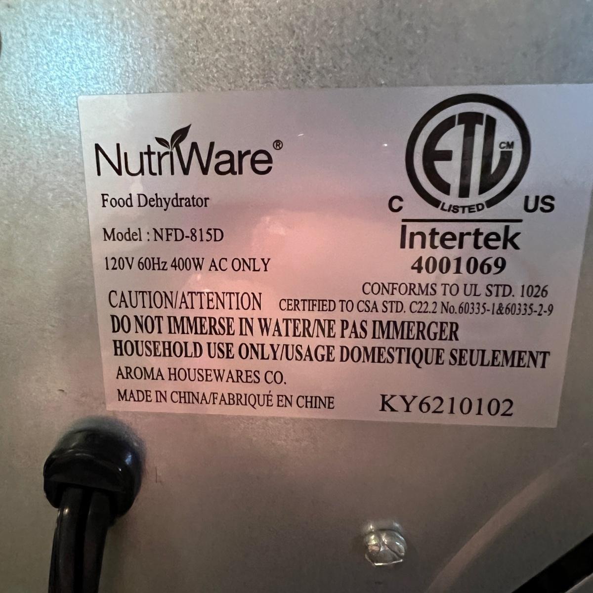 NutriWare Food Dehydrator NFD-815D
