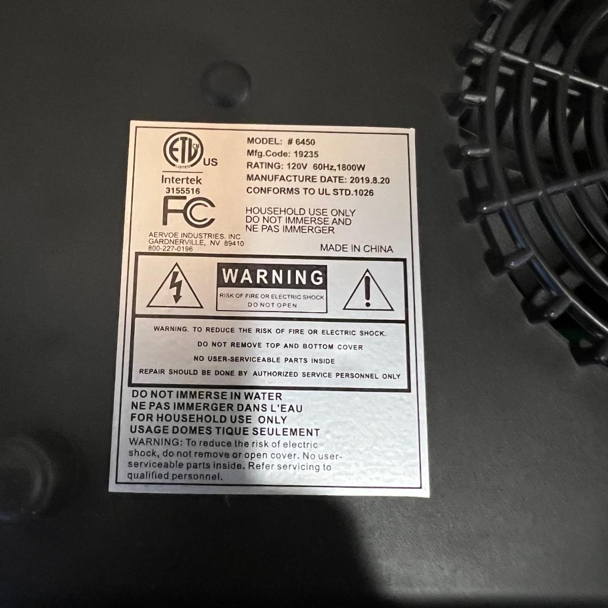 Two induction cooktops with manuals that both powered on when plugged in. Square unit measures 11.5" x 14" x 2.5"H, round item is 12" x 14" x 2.5"H.