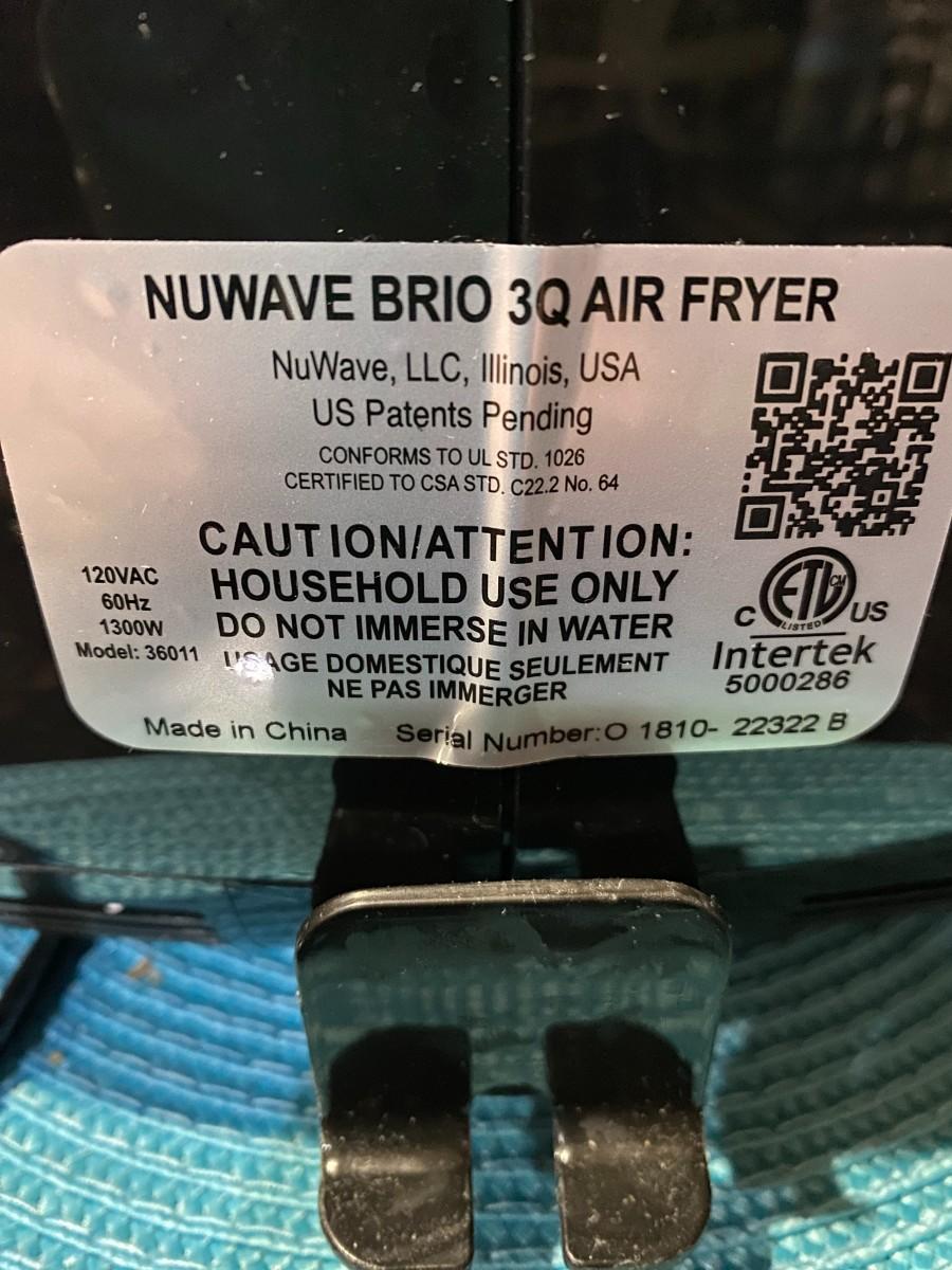Nuwave 3-quart air fryer. Very clean. Model #36011