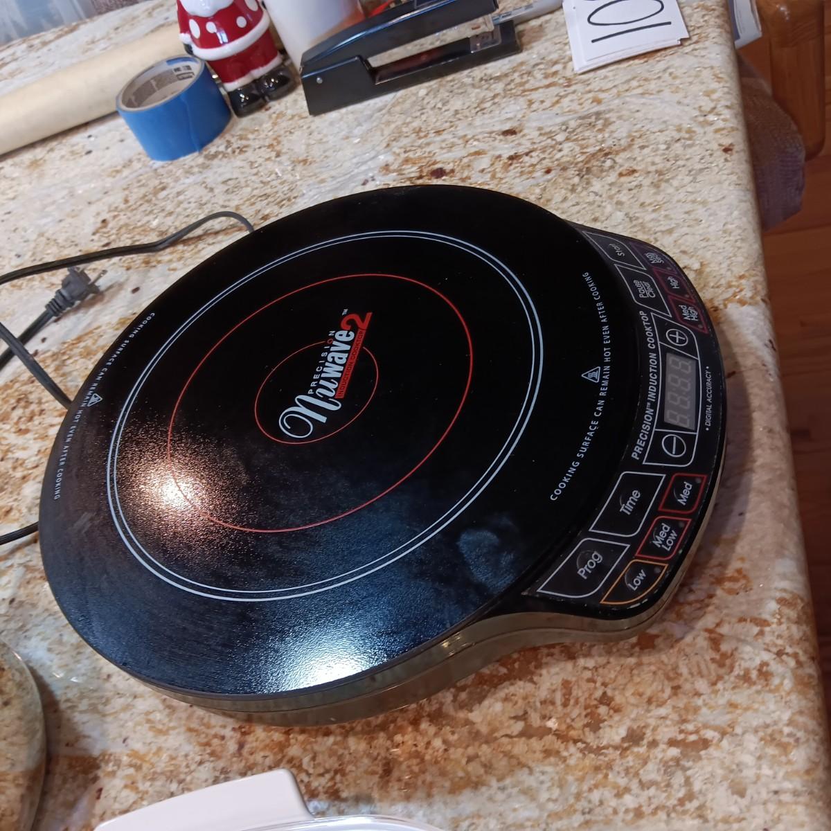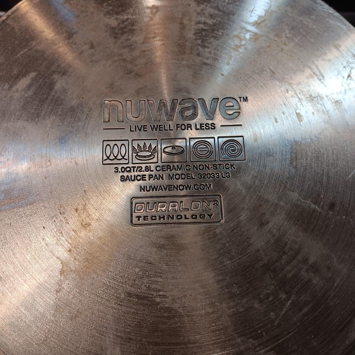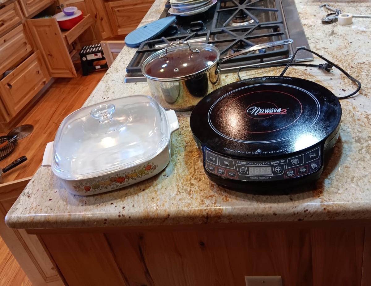 NUWAVE INDUCTION COOKTOP AND SAUCEPAN PLUS A CORNING WARE CASSEROLE DISH