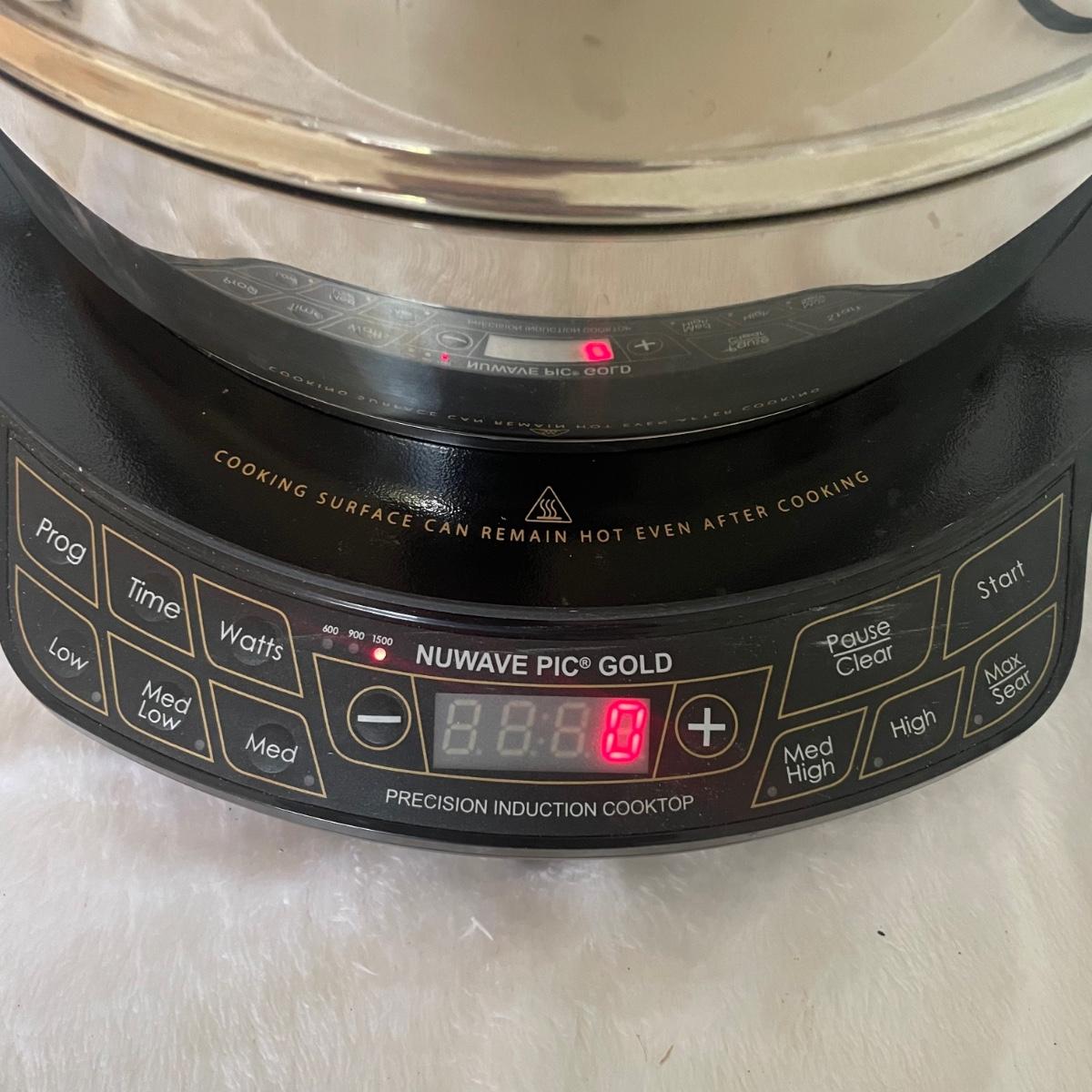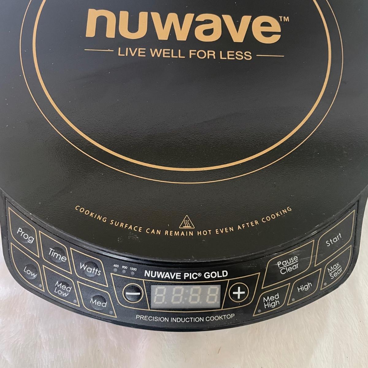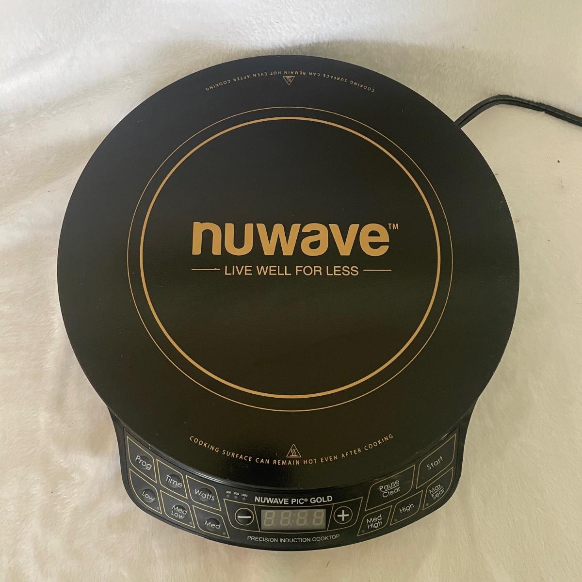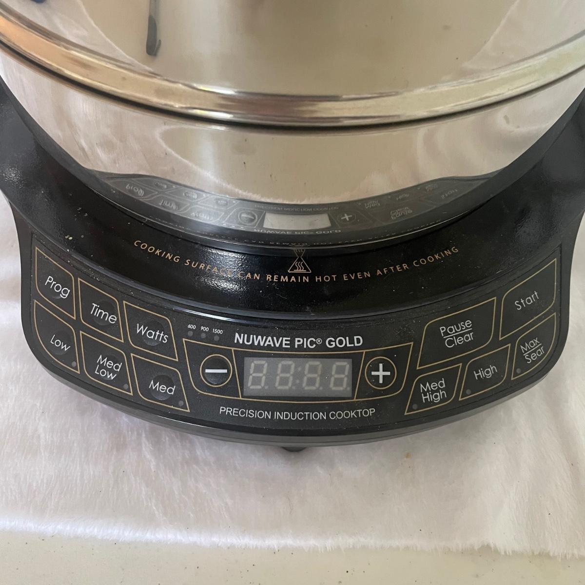 Nuwave Ultimate Cookware Set is in great condition. Powers on when plugged in. Comes with several separate appliances. Measures at 8” H all put together.