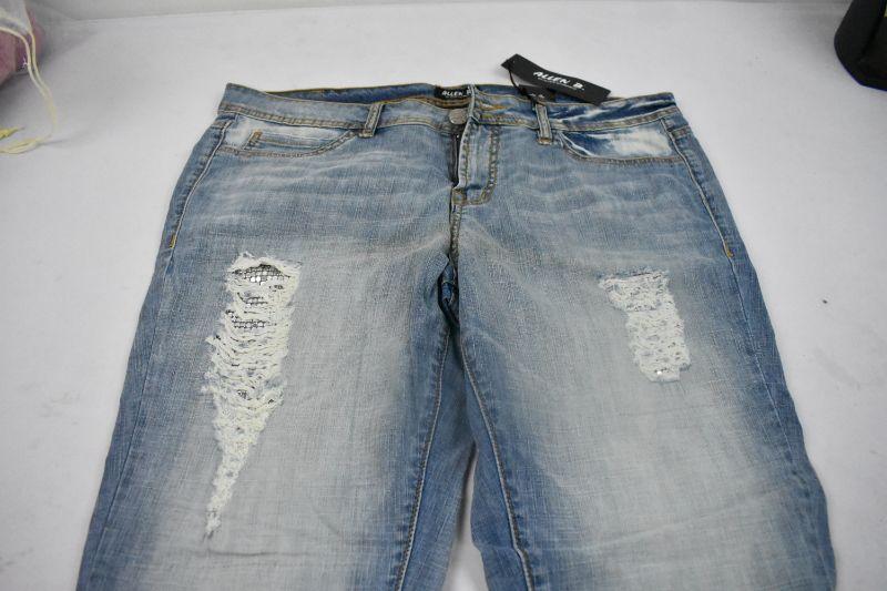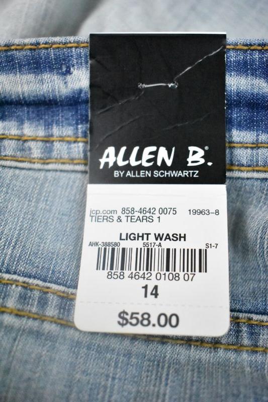 NWT Allen B. Light Wash Straight Jeans W/ Tears & Shiny Metal, Women's 14 - New