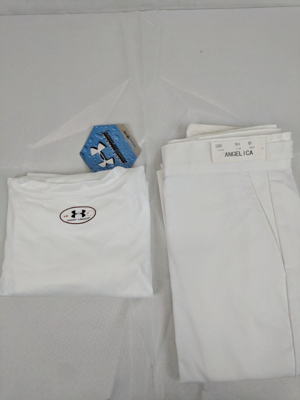NWT Angelica White Dress Pants Size 34XX & Under Armor Short Sleeve Shirt Size L