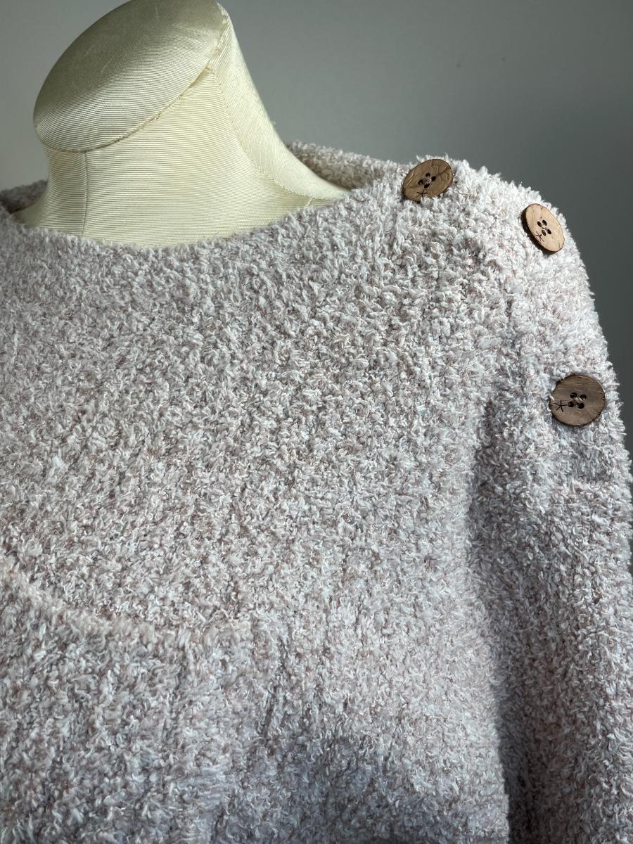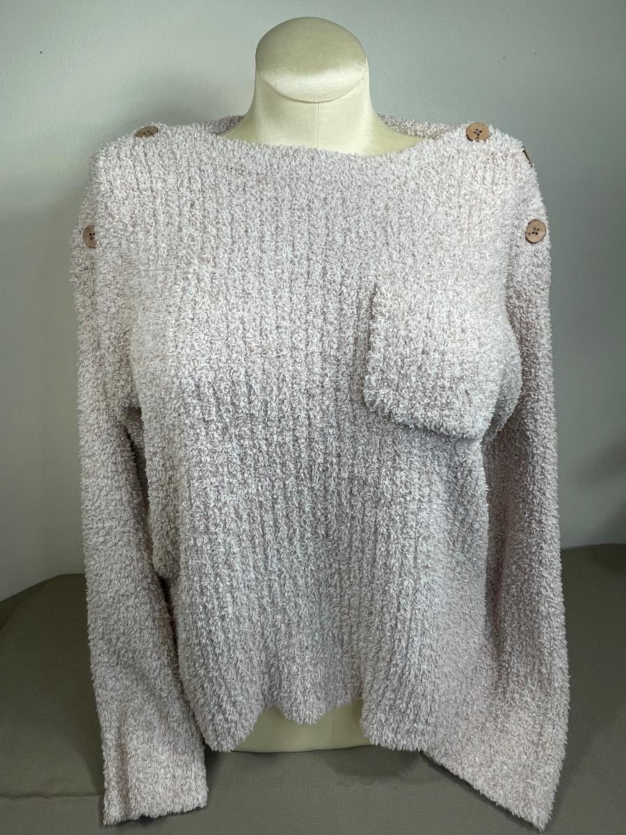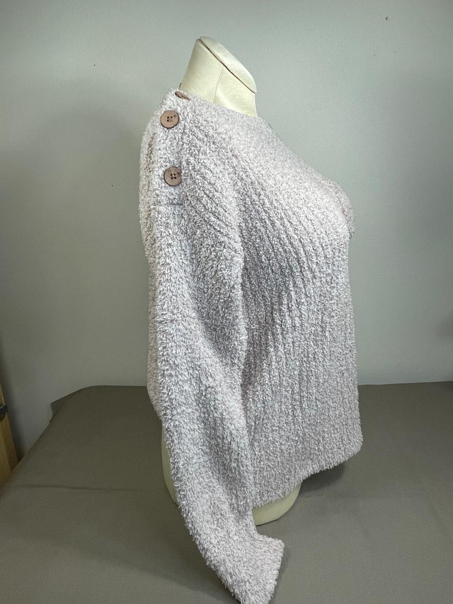 Super soft boat neck with button detail on the shoulders in Vintage Rose color. Size XL