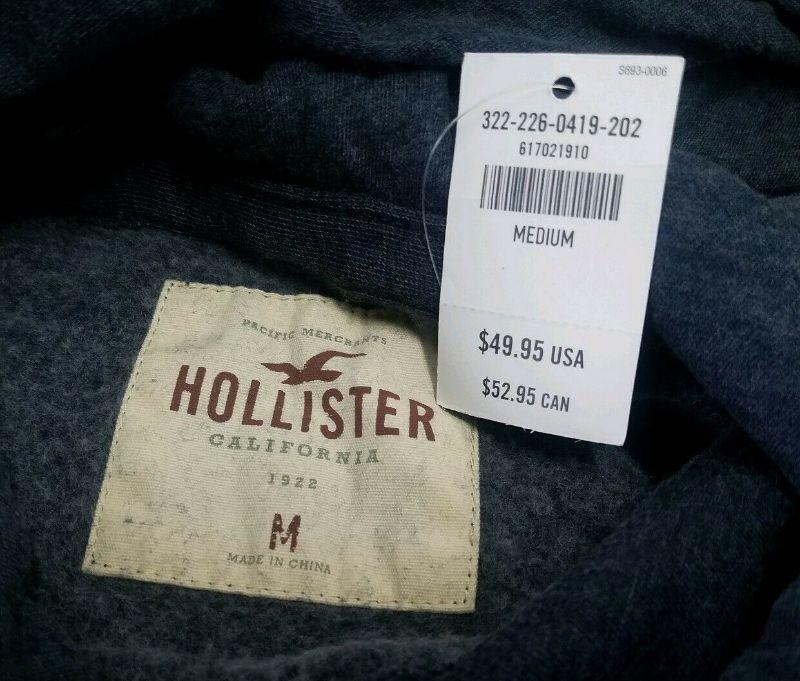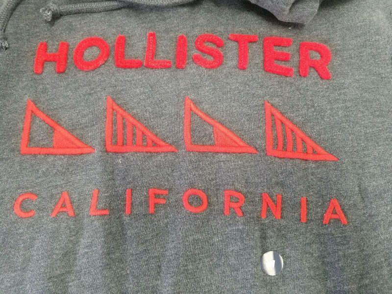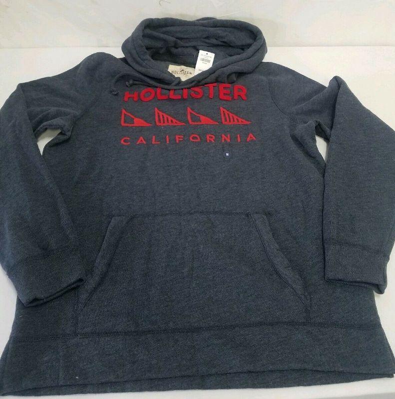 NWT Hollister California Gray Pullover Hoodie with Red Embroidery, Medium