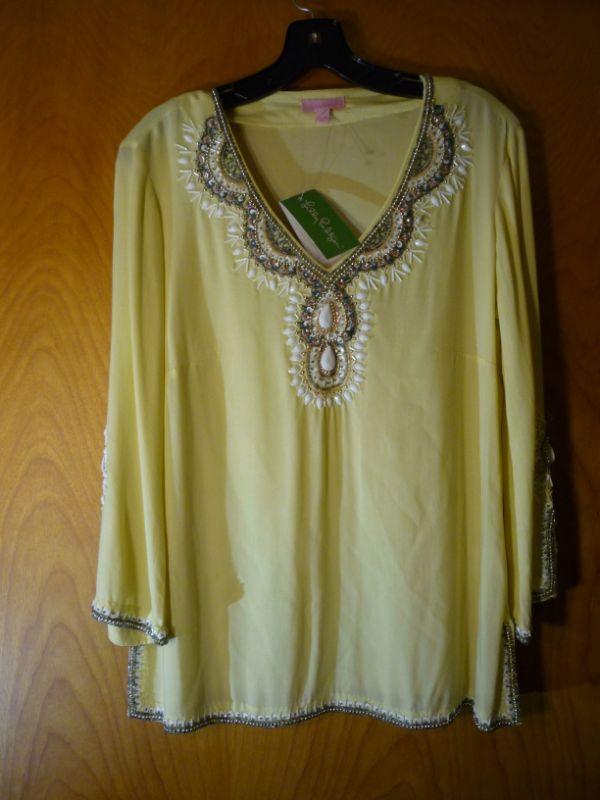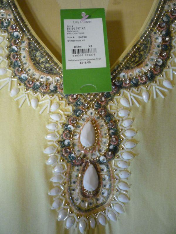 New with Tag Retail price $218 - Lilly Pulitzer - pull over yellow Braydon tunic - heavily embellished - spare beads included --- 100% Rayon - Size XS