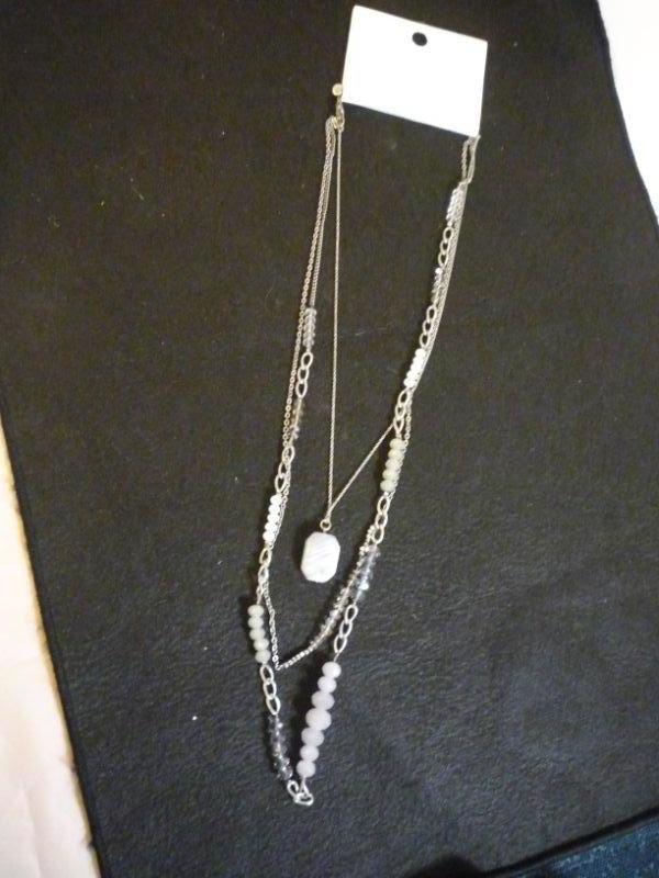 RETAIL TAG $44.50 - Loft Necklace - with real agate - multi strand - measures approximately 17 inches from clasp to bottom of longest strand