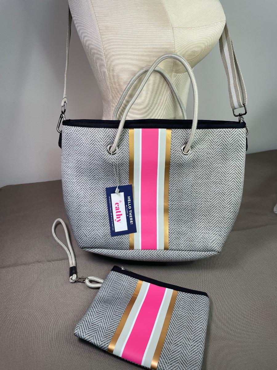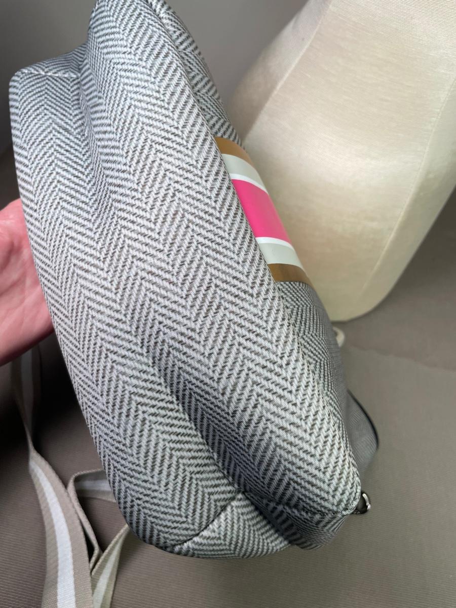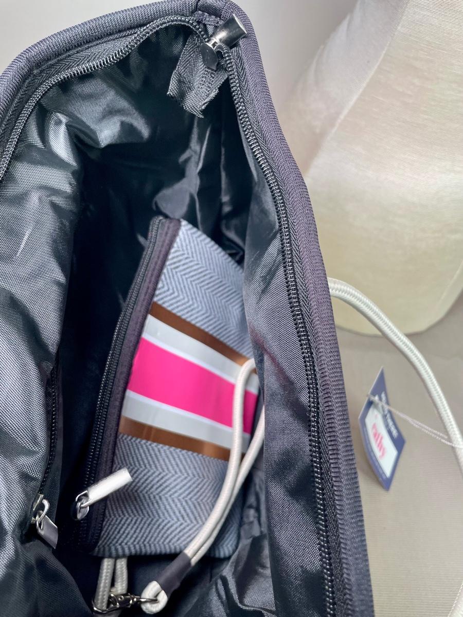 This one is lined and the wristlet is detachable. Comes with crossbody strap.