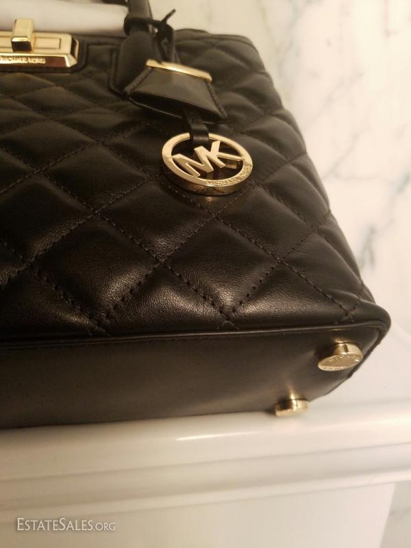 This gorgeous quilted satchel bag comes crafted in smooth leather with signature hardware and a slender adjustable strap. Lined with signature logo lining.