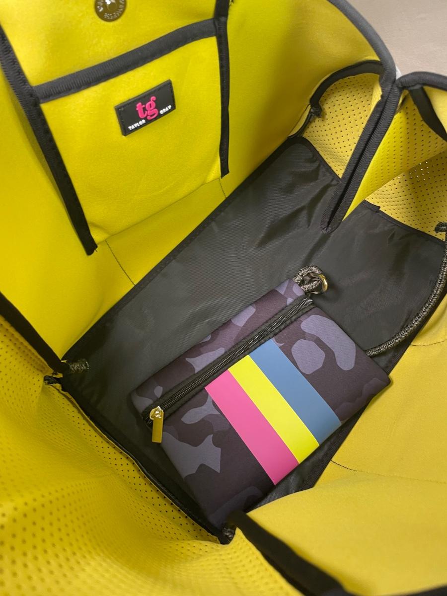 Great for carrying your gym clothes and pickleball racket or a trip to the beach. Has an attached coin purse for your keys.
