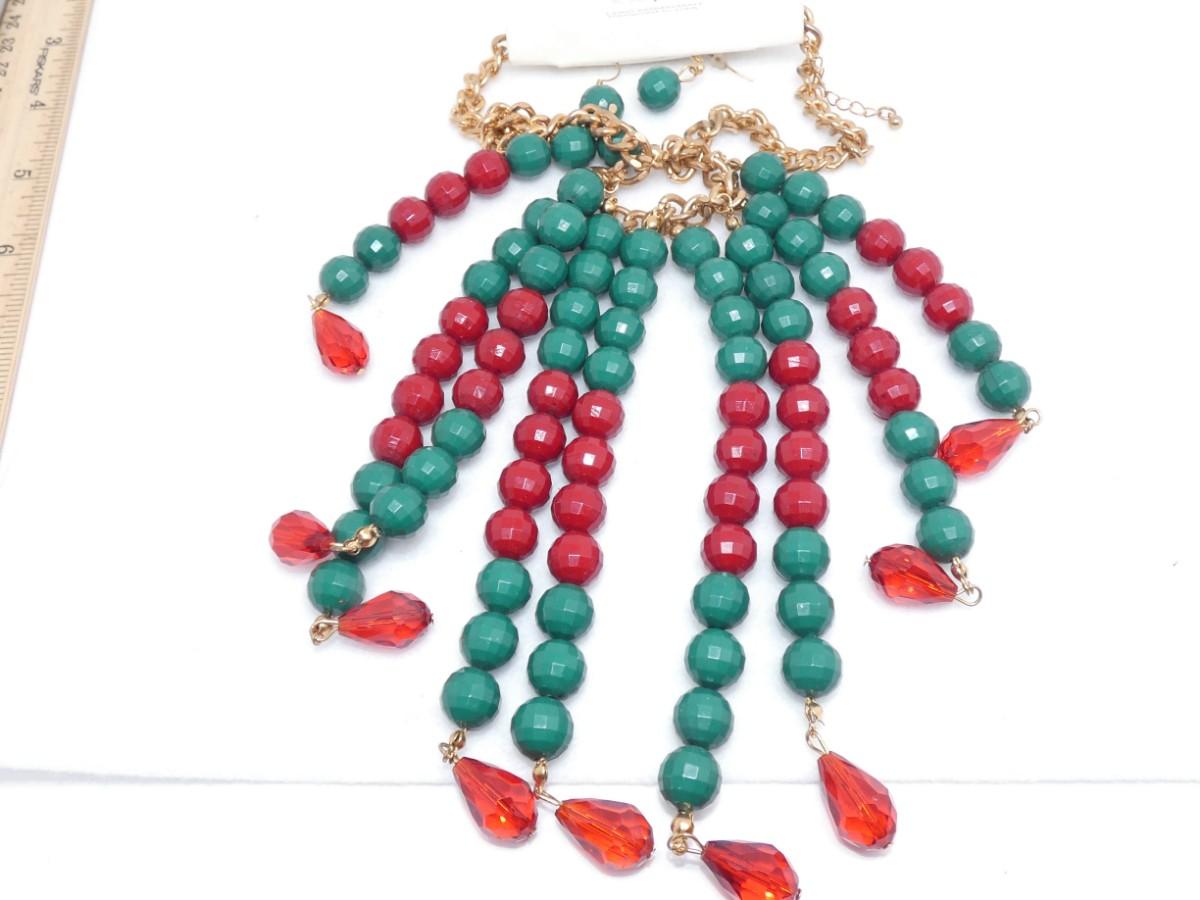 NWT Red & Green Christmas Jewelry Set, Necklace, Earrings