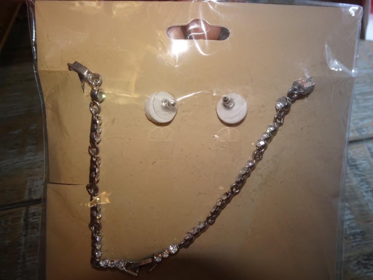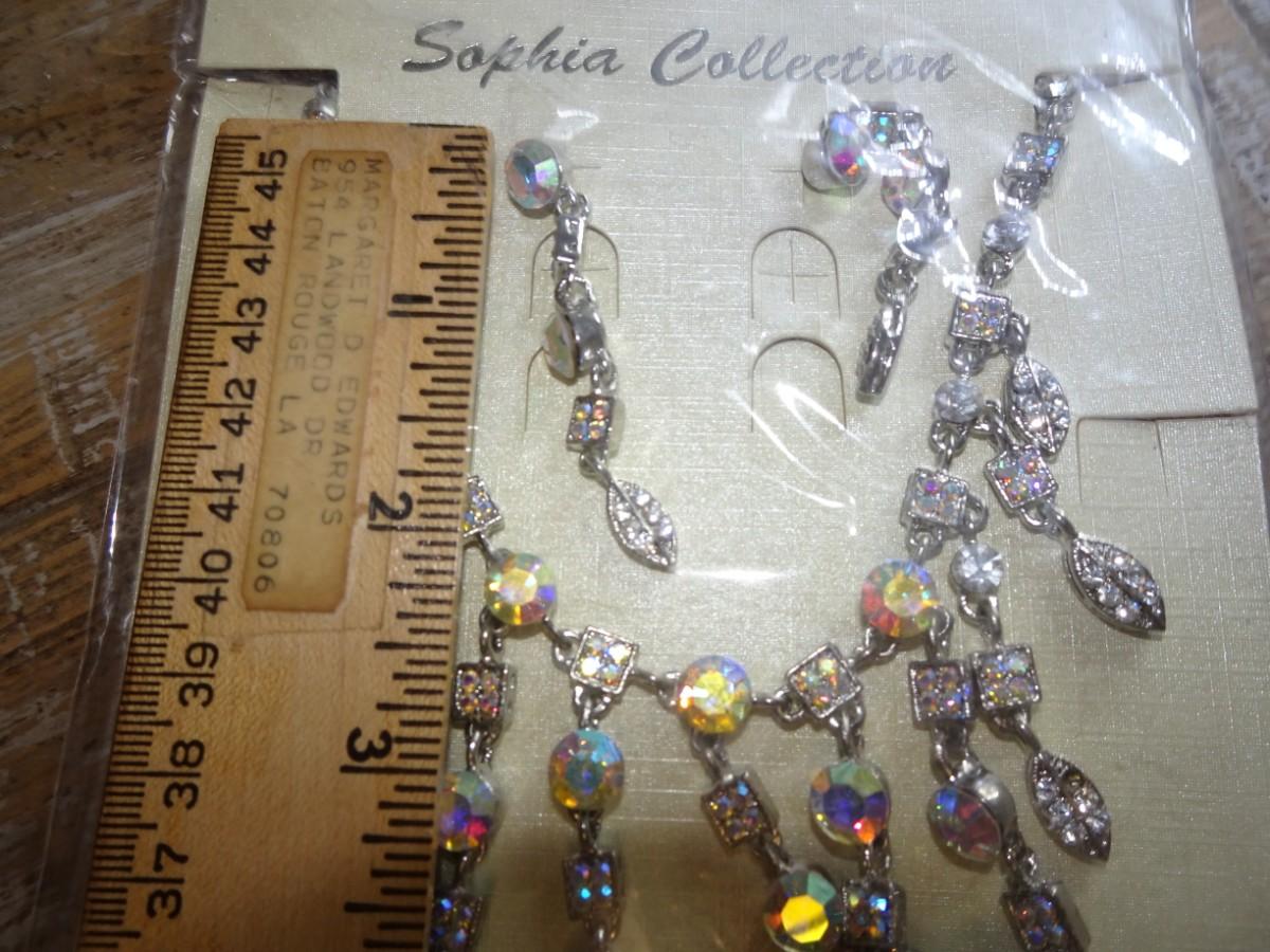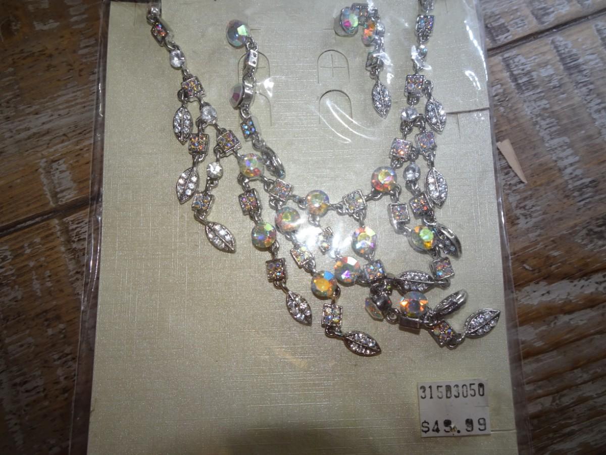 NWT Rhinestone Necklace & Earring Set, Aurora Borealis Colors