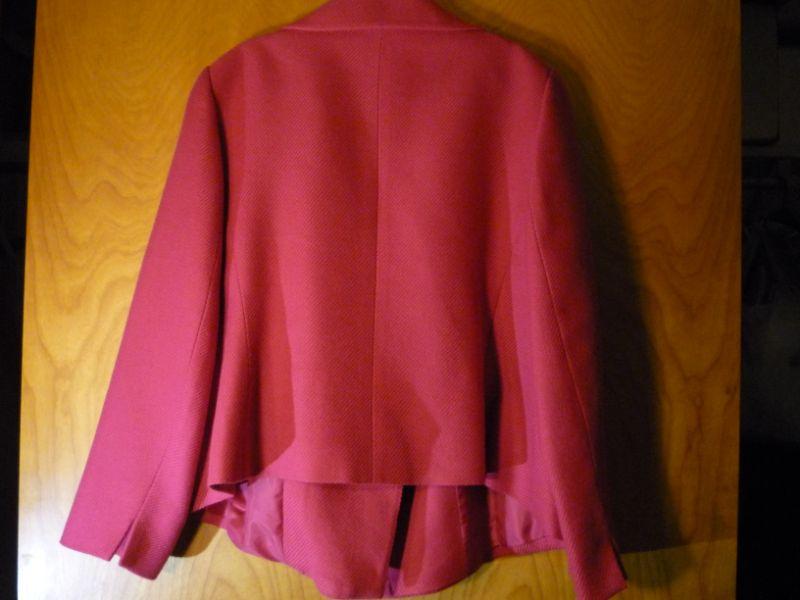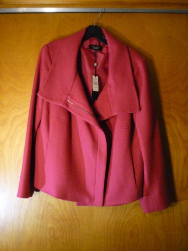 New with tag - size 16 Petite Women's - zipper close - Retail price $189 - Shell blend of 60% acrylic 40% wool - lining 100% polyester - dry clean only. Rich raspberry color. Two side pockets