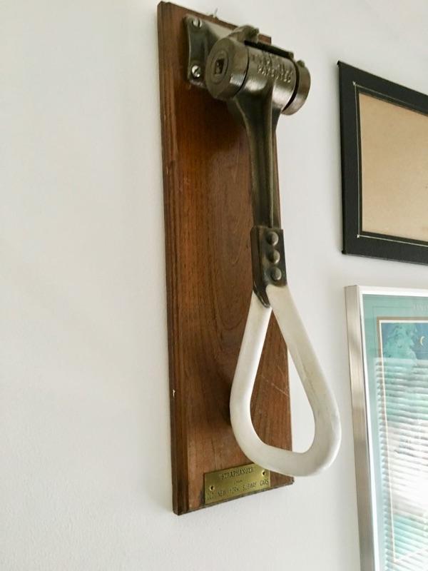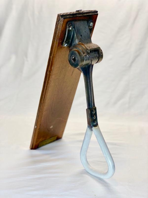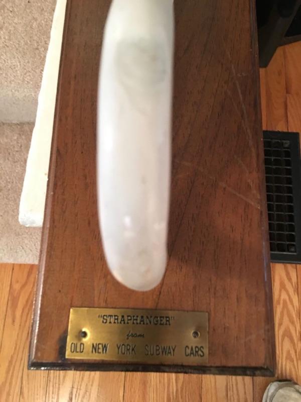 1930'S ANTIQUE AMERICAN INDUSTRIAL DEPRESSION ERA NEW YORK CITY SUBWAY CAST IRON AND PORCELAIN STANDING PASSENGER "STRAPHANGER" OR PIVOTING GRAB HANDLE. Shipping available for extra cost.